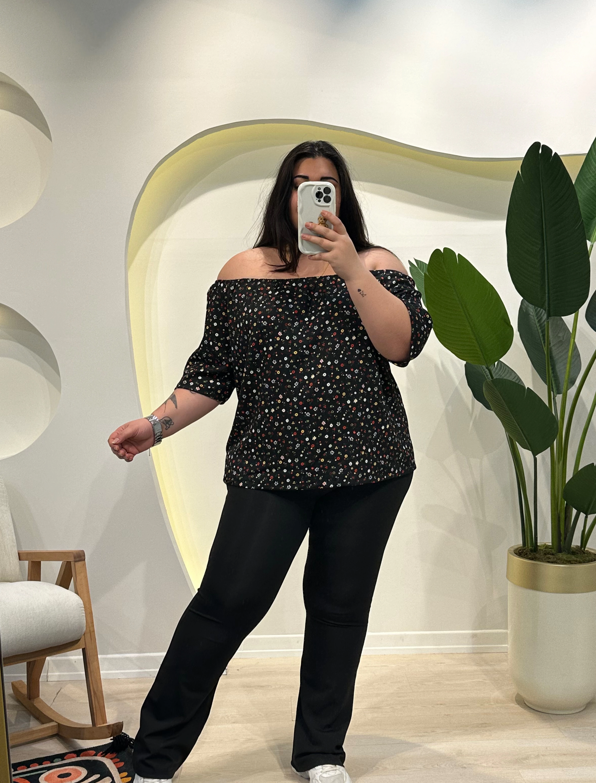 Bürümcük Likrali Madonna Bluz - Mini Çiçekli