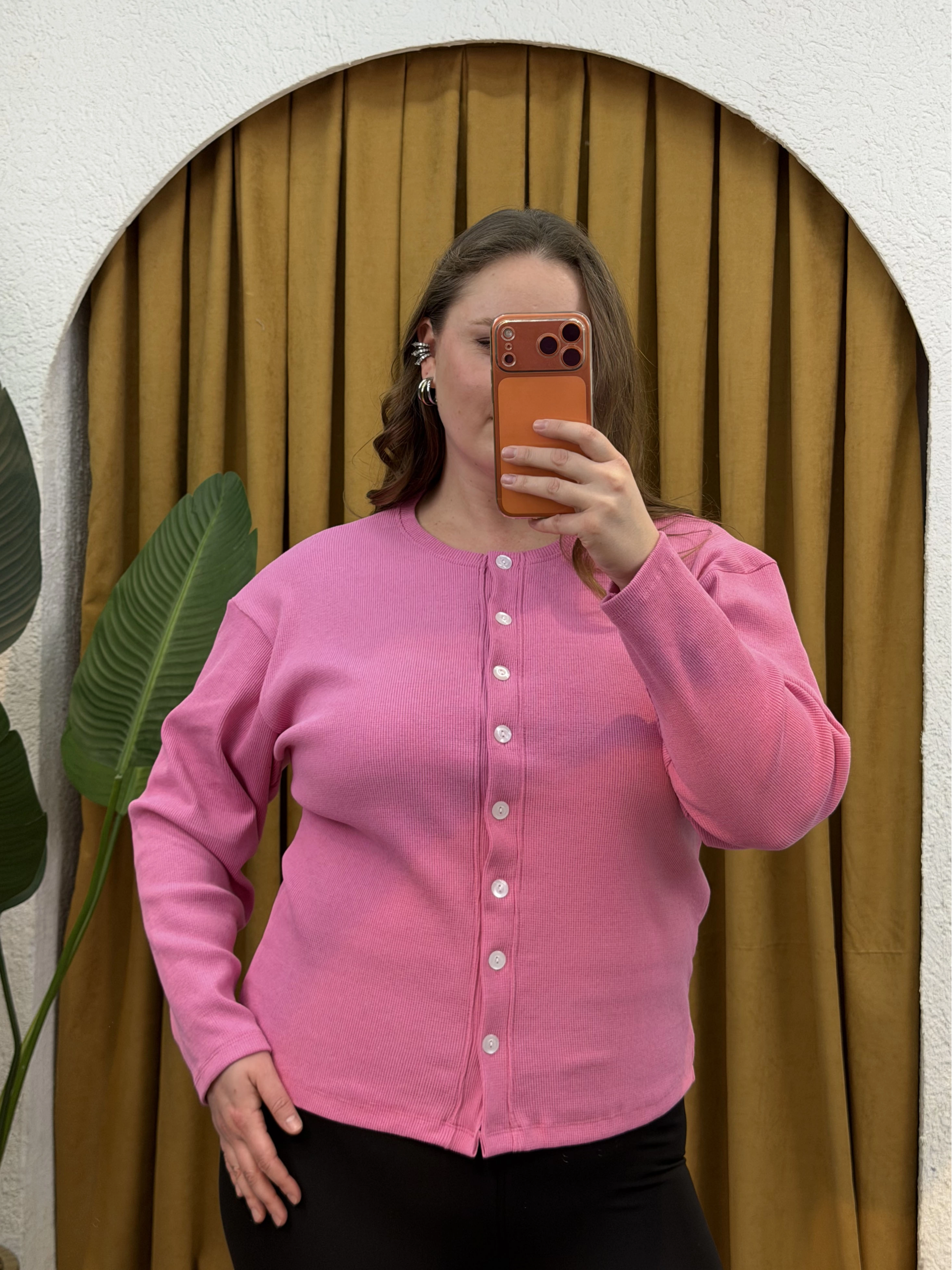 Düğmeli Basic Triko Hırka - Pembe