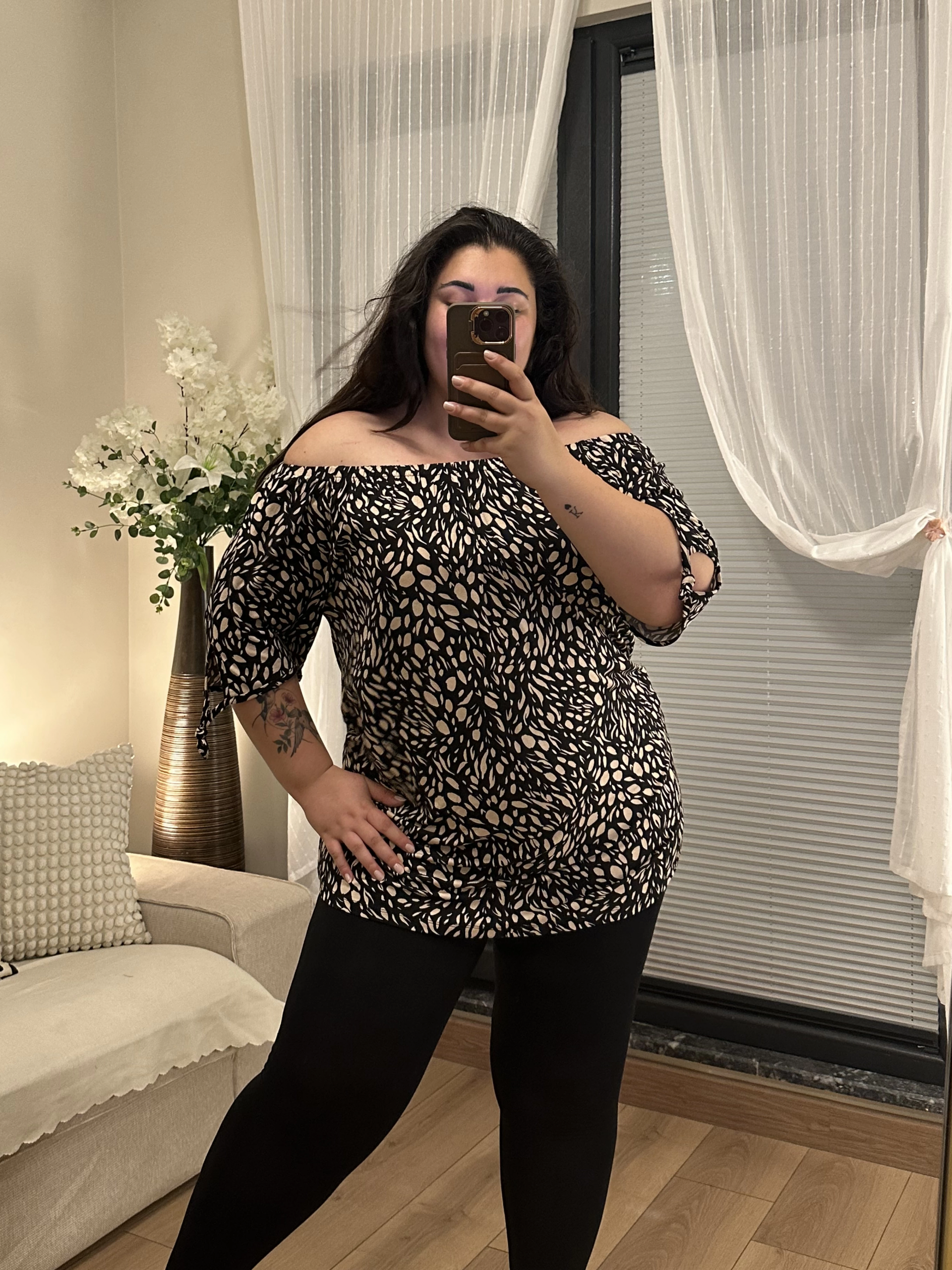Esnek Penye Madonna Tunik Bluz - Benekli