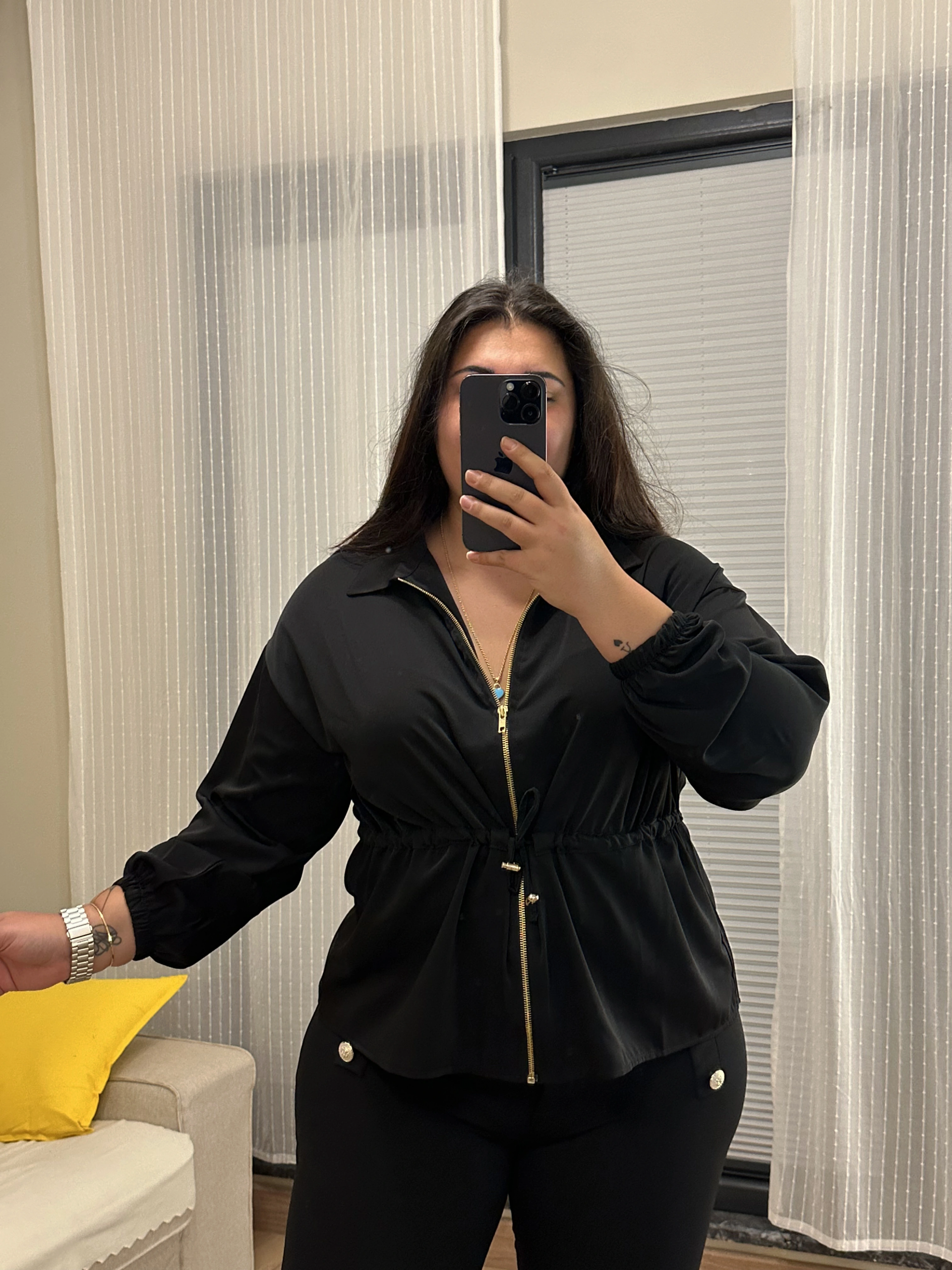 Fermuarlı Lastik Detaylı Bomber Hırka - Siyah