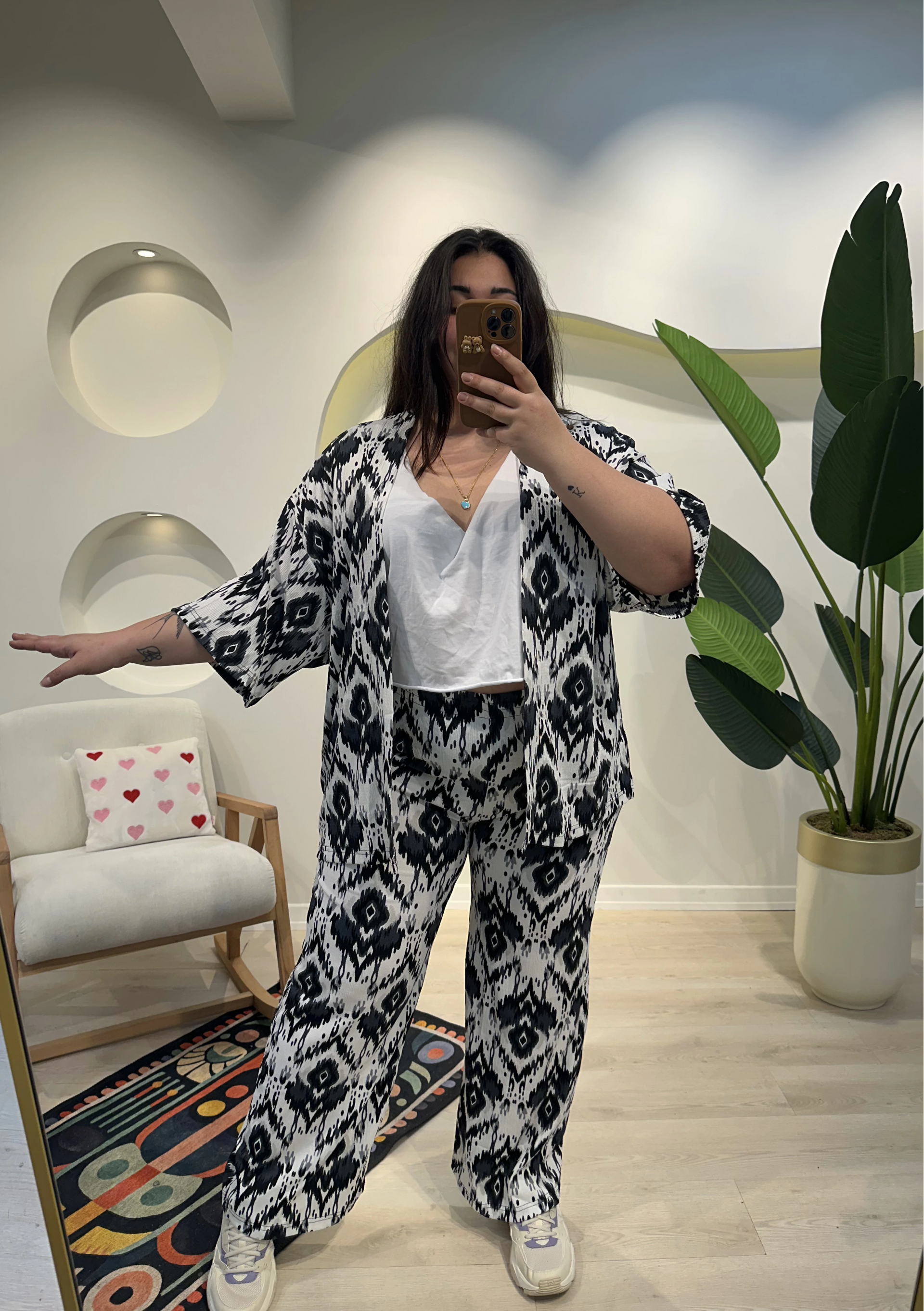 Geniş Kesim Bürümcük Palazzo Takım - Siyah Desenli