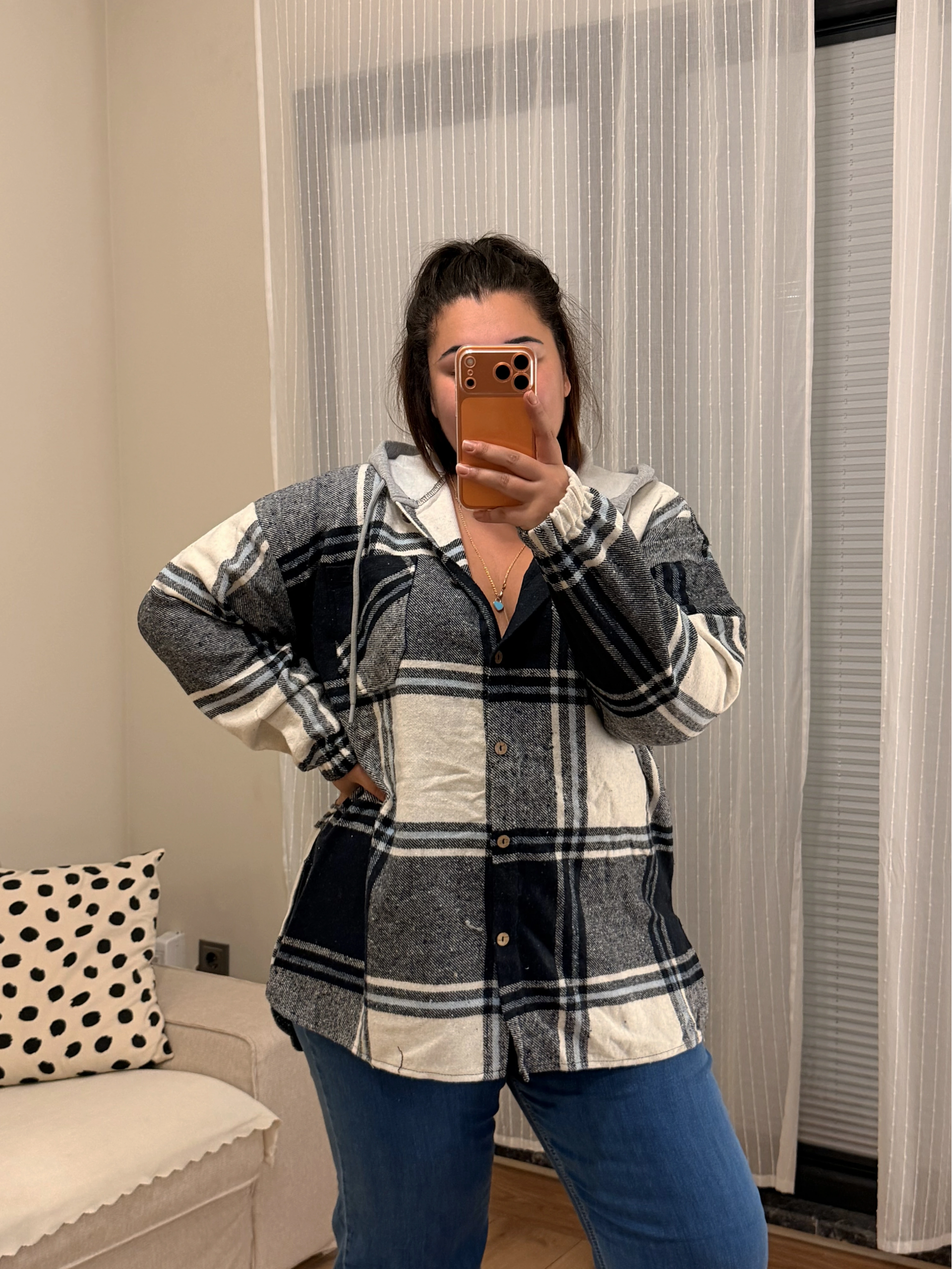 Geniş Kesim Kapüşonlu Oduncu Gömlek - Lacivert