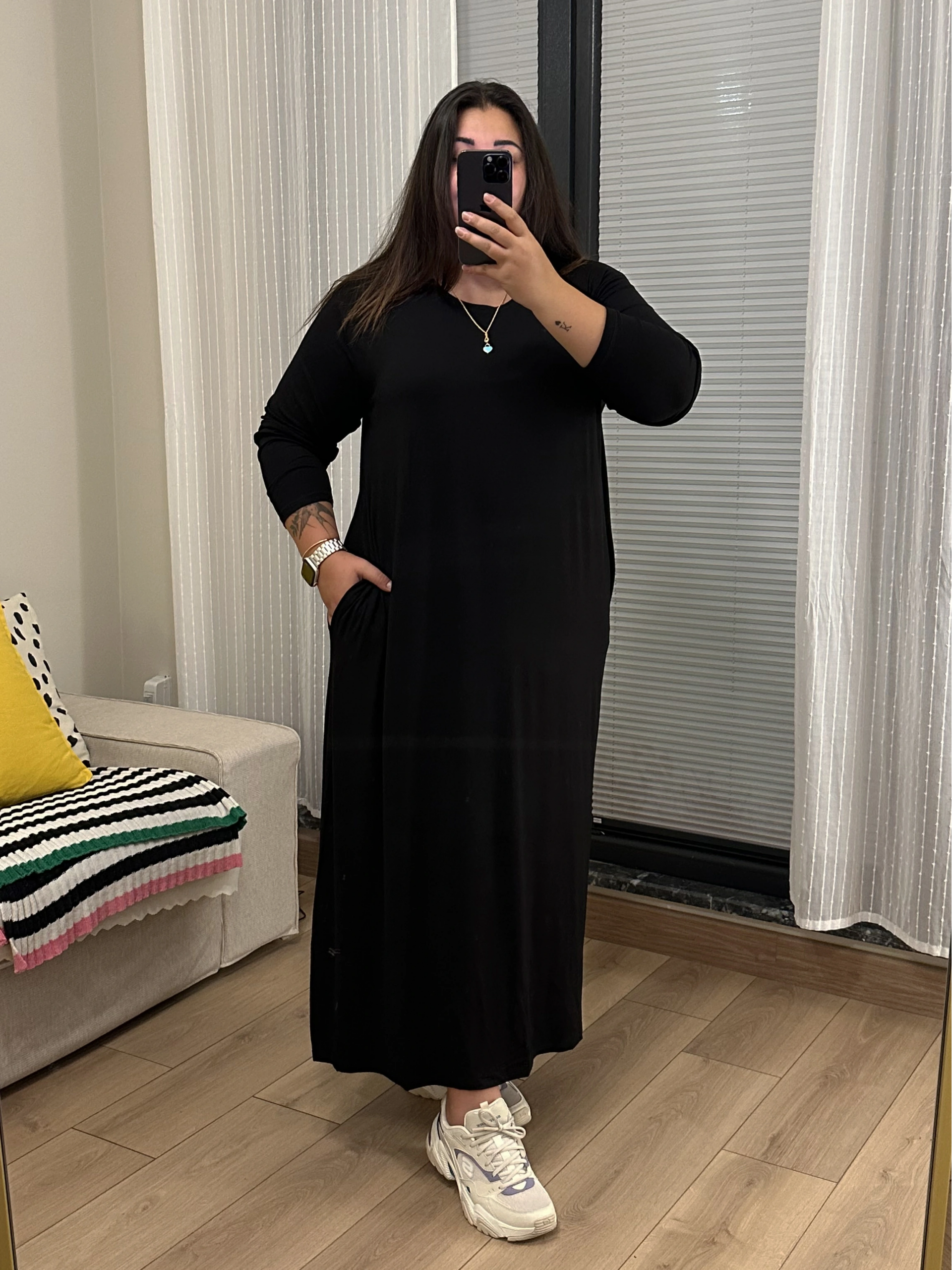 Gizli Cep Basic Esnek Penye Elbise - Siyah