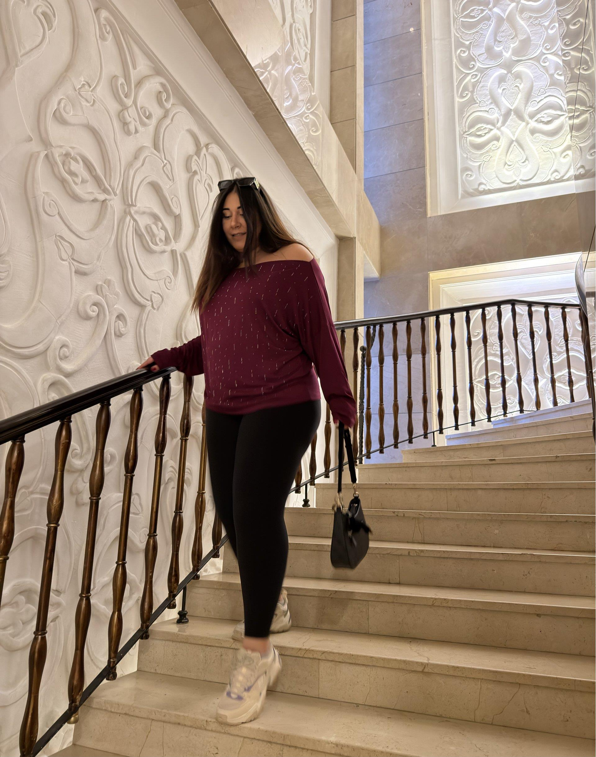 Kayık Yaka, Taş Detaylı, Modal Kumaş, Rahat Kalıp Esnek, Likralıdır