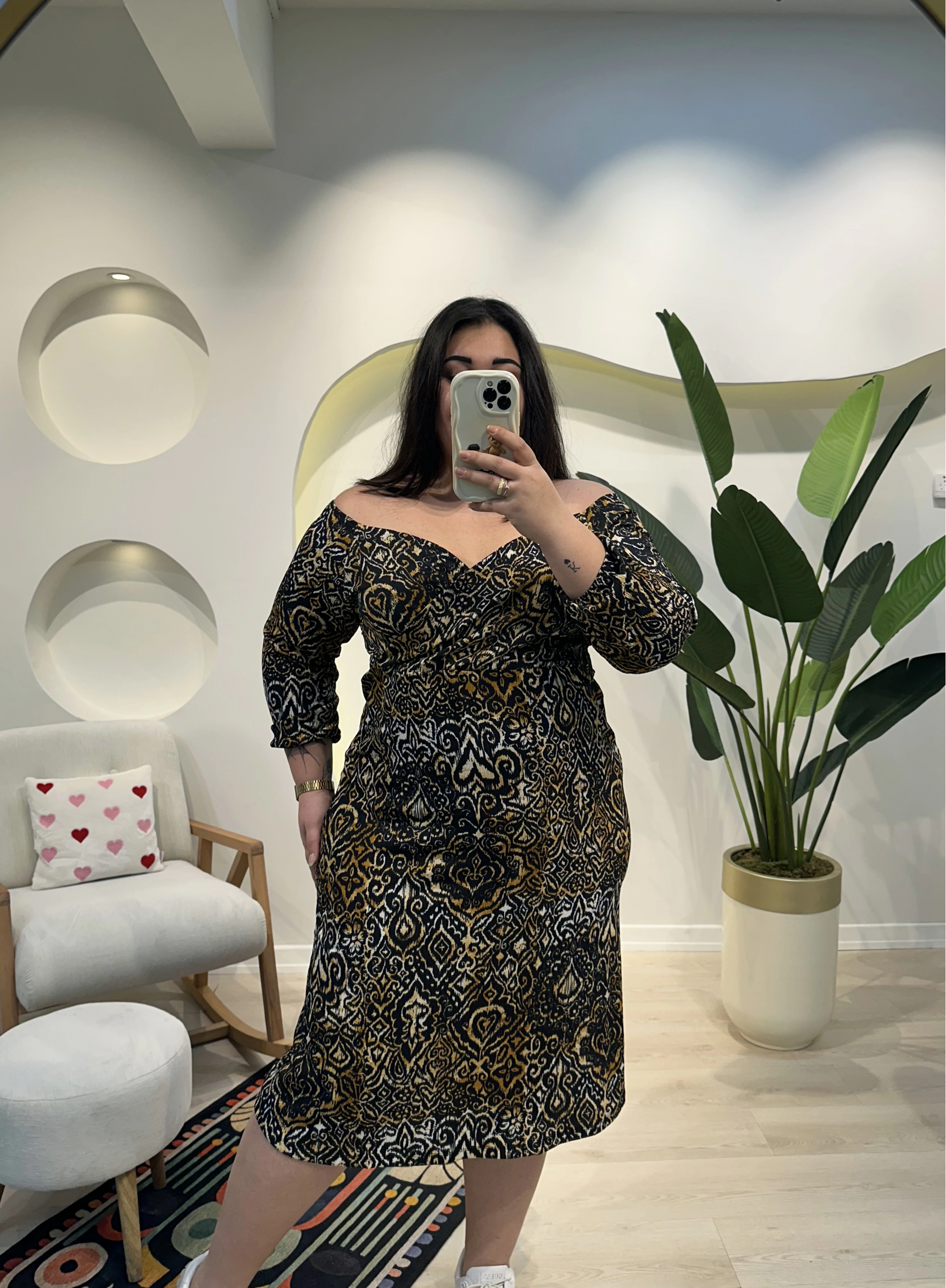 Kruvaze Yaka Esnek Bürümcük Elbise - Antik