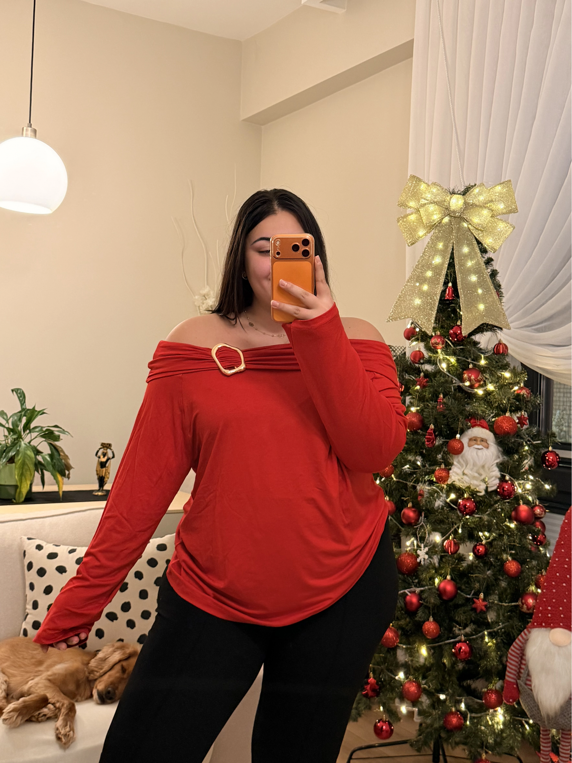 Madonna Yaka Broş Detaylı Esnek Modal Bluz - Kırmızı