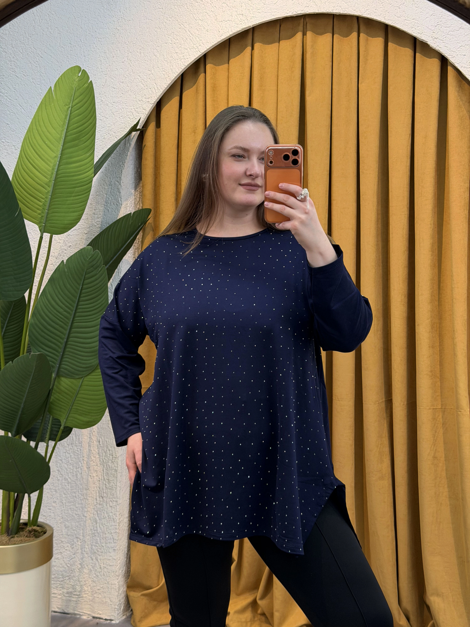 Modal Kumaş Esnek Taş Detaylı Bluz - Lacivert
