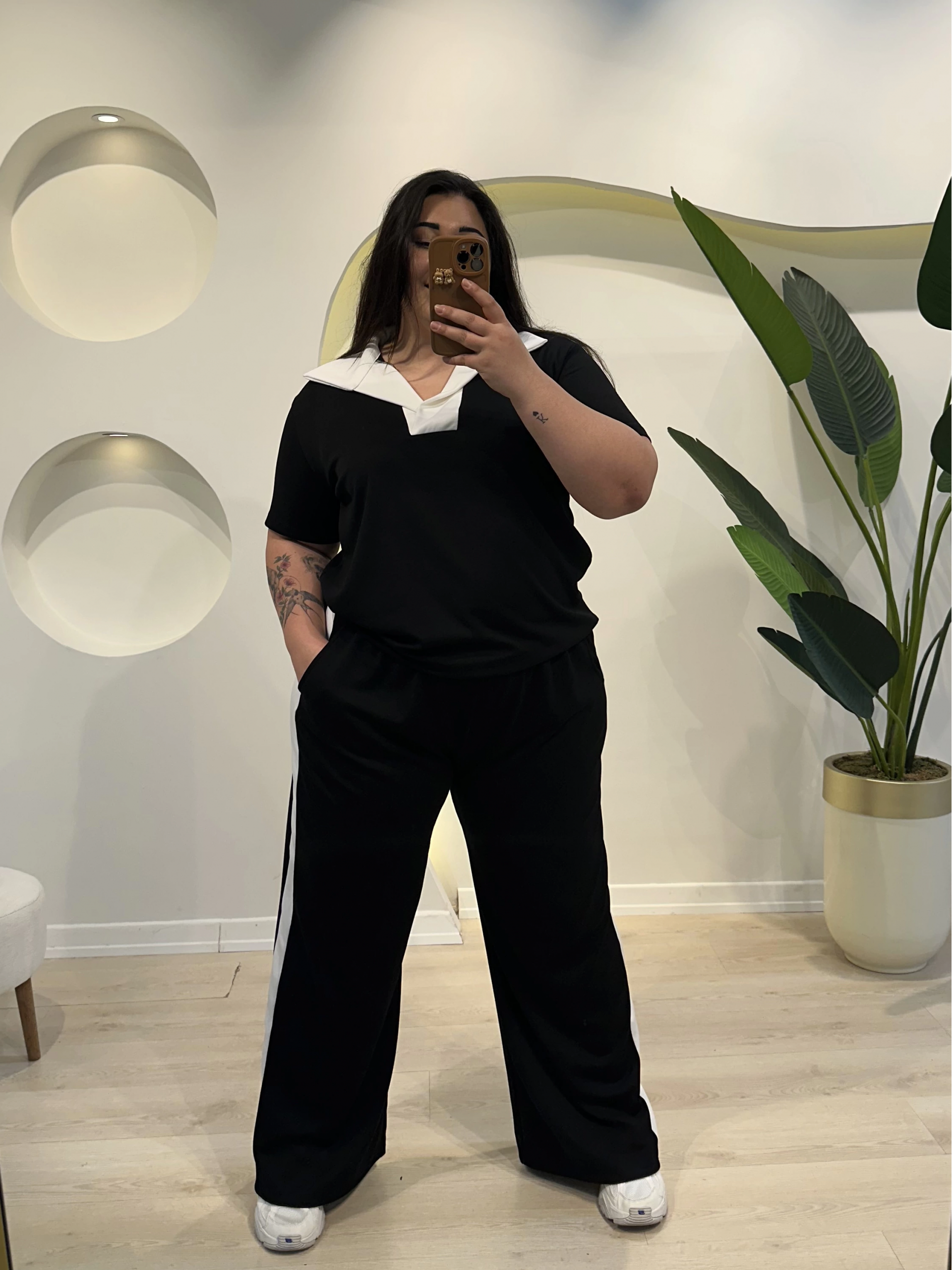 Geniş Kesim , Esnek Premium Modal Kumaş, Extra Yüksek Bel, Cepli Polo Yaka Takım