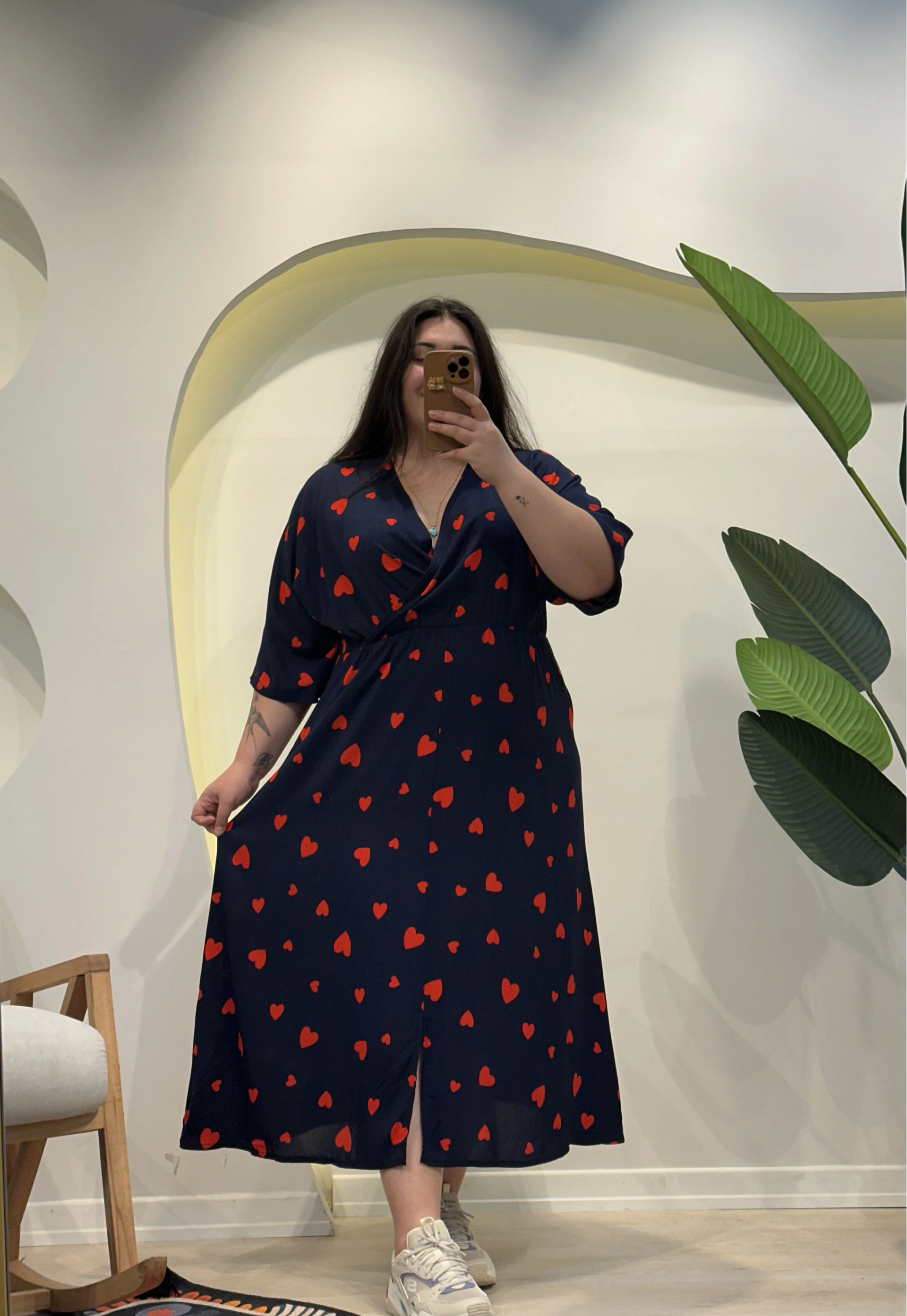 Geniş Kalıp , Dokuma Viskon Kumaş, Kruvaze Yaka Yarasa Kol Elbise