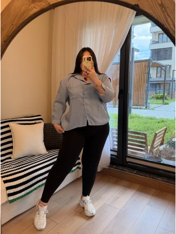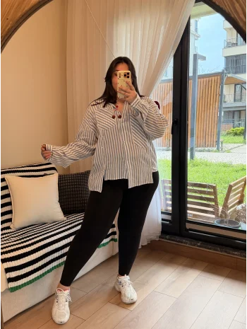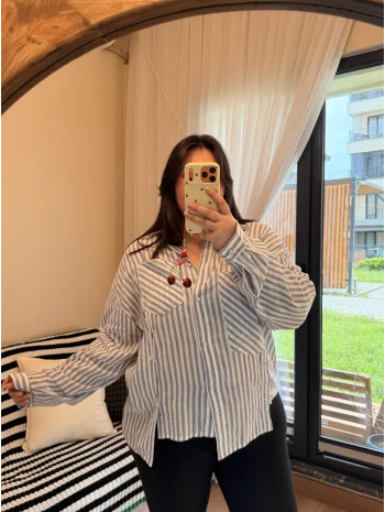 Geniş Kesim Pamuklu Gömlek - Mavi Çizgili