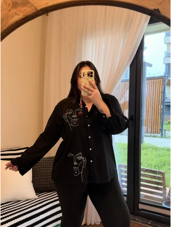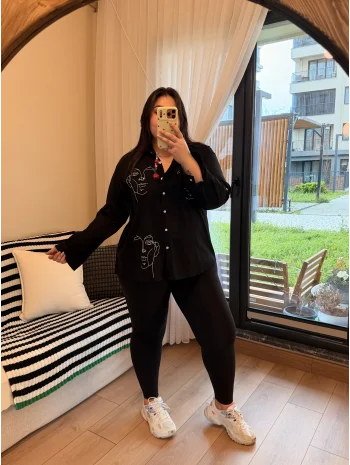 Geniş Kesim Pamuklu Gömlek - Picasso Nakışlı