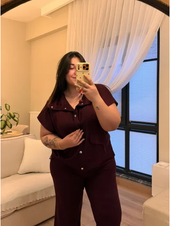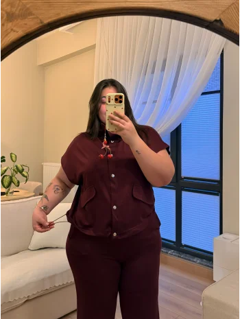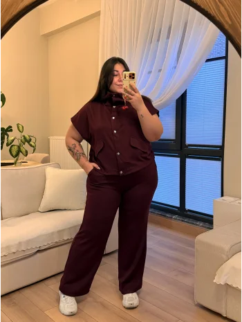 Cep Detaylı İkili Modal Takım - Bordo
