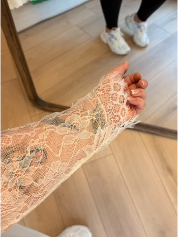 Kolları Dantel Detaylı İkili Krep Takım - Siyah
