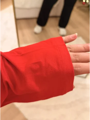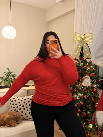 Omuz Detaylı Esnek Modal Bluz - Kırmızı