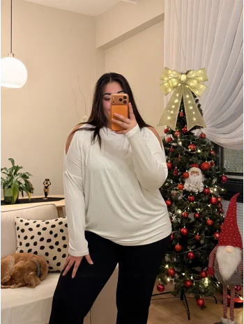 Omuz Detaylı Esnek Modal Bluz - Beyaz