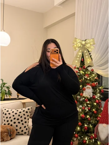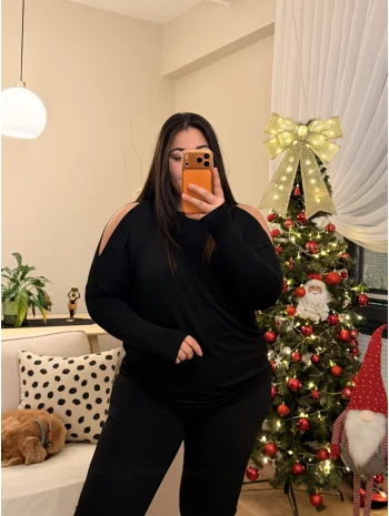 Omuz Detaylı Esnek Modal Bluz - Siyah