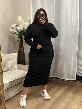 Askılı Kruvaze Esnek Burgu Elbise - Siyah