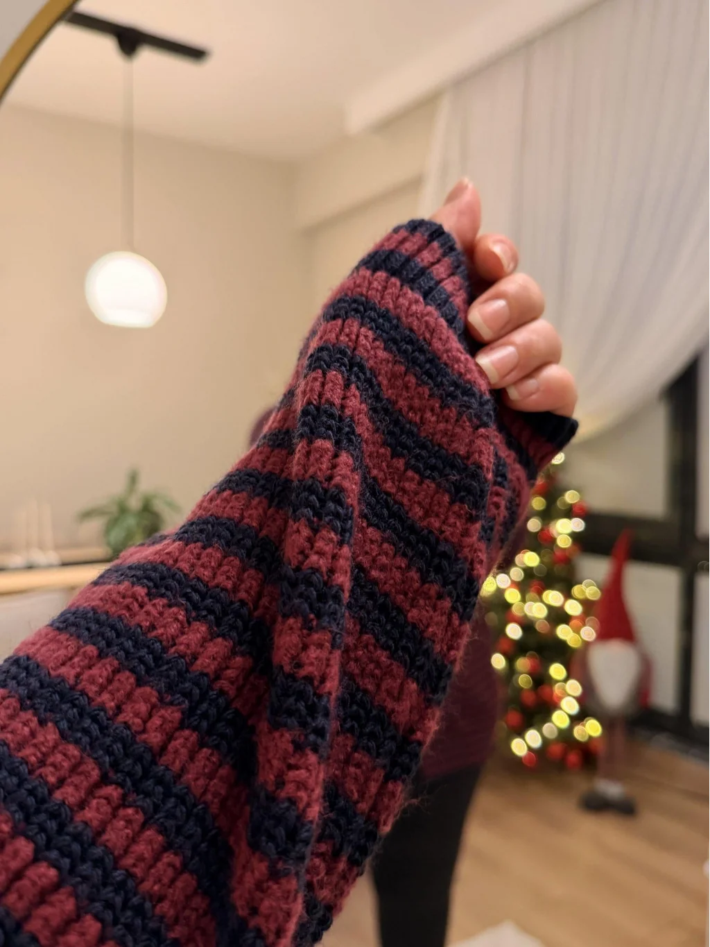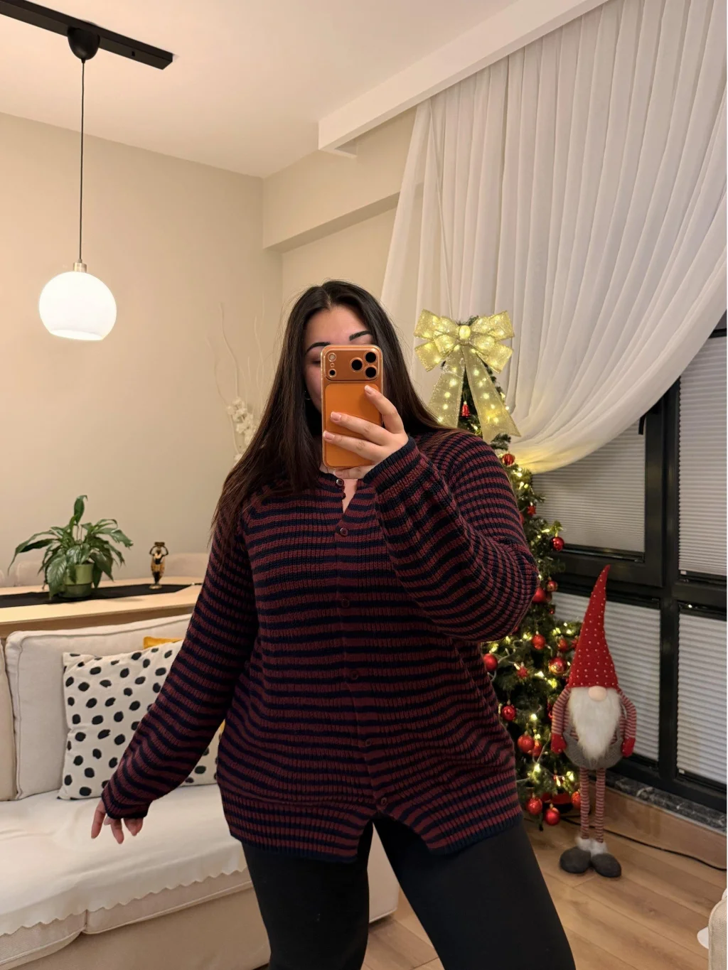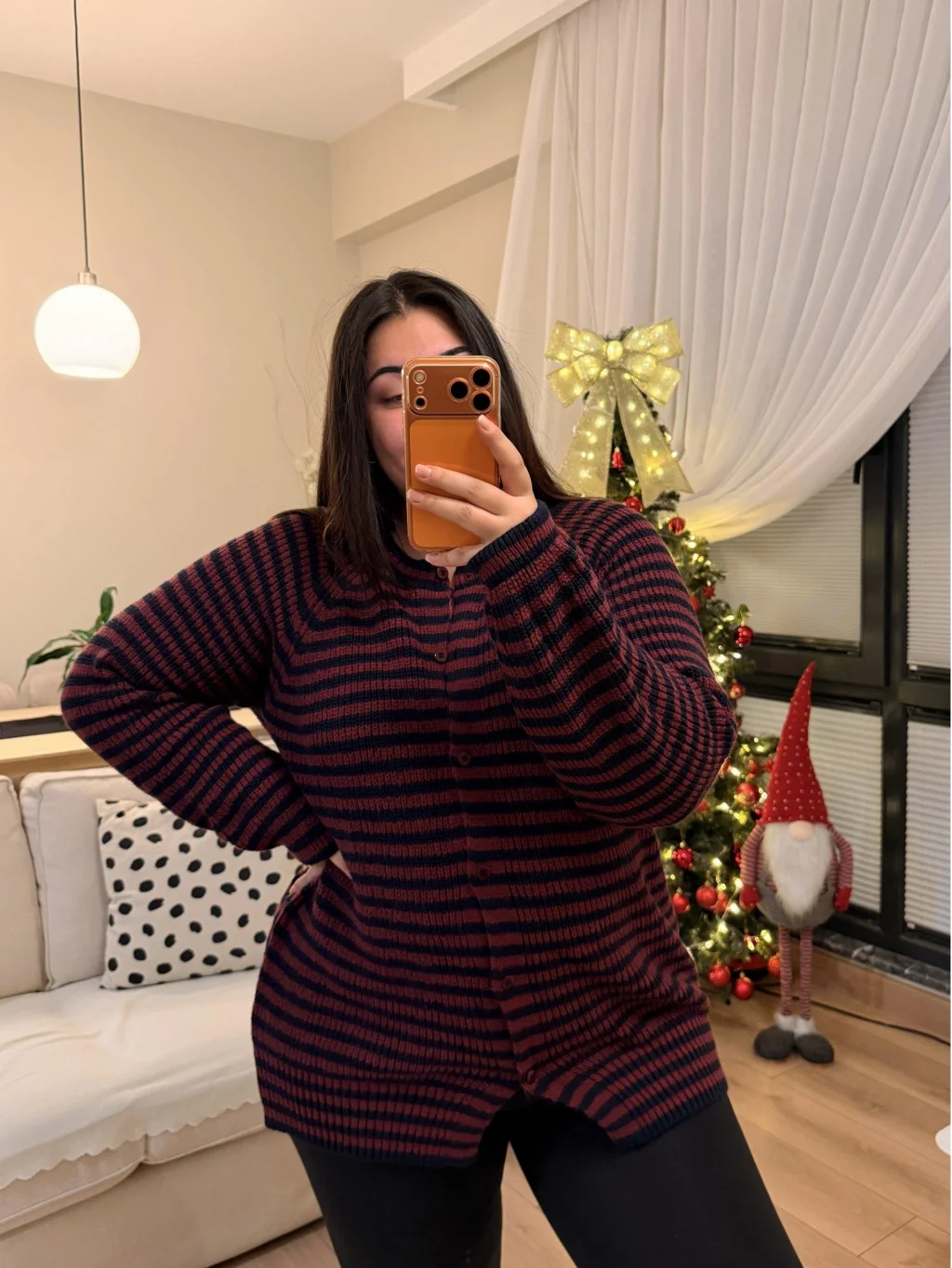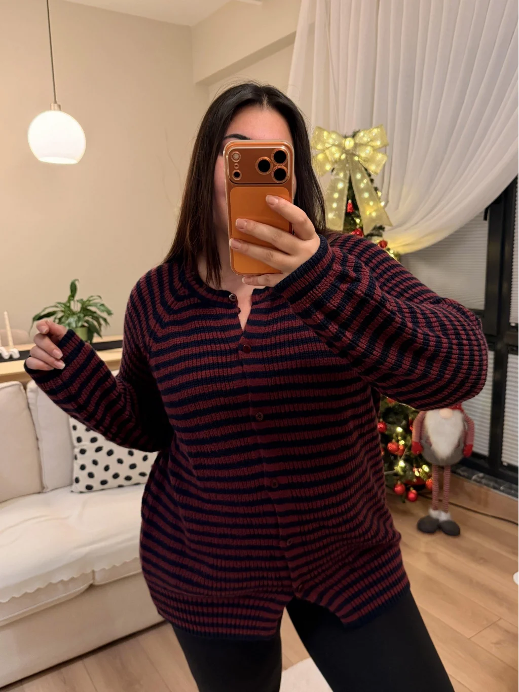 Premium Çizgili Düğmeli Triko Hırka - Bordo Çizgili