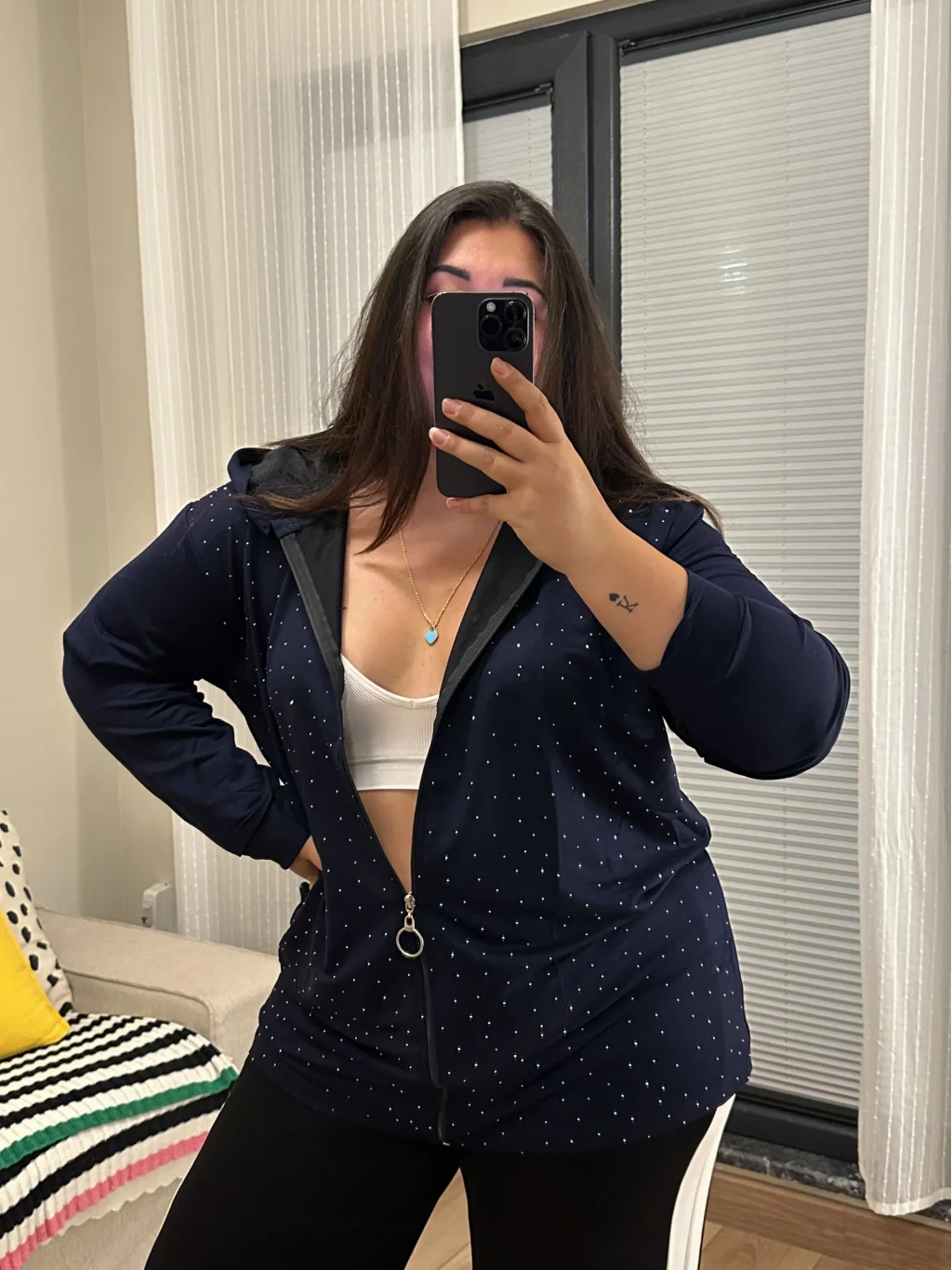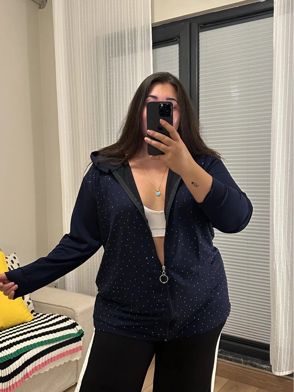 Taş Detaylı Fermuarlı Modal Hırka - Lacivert