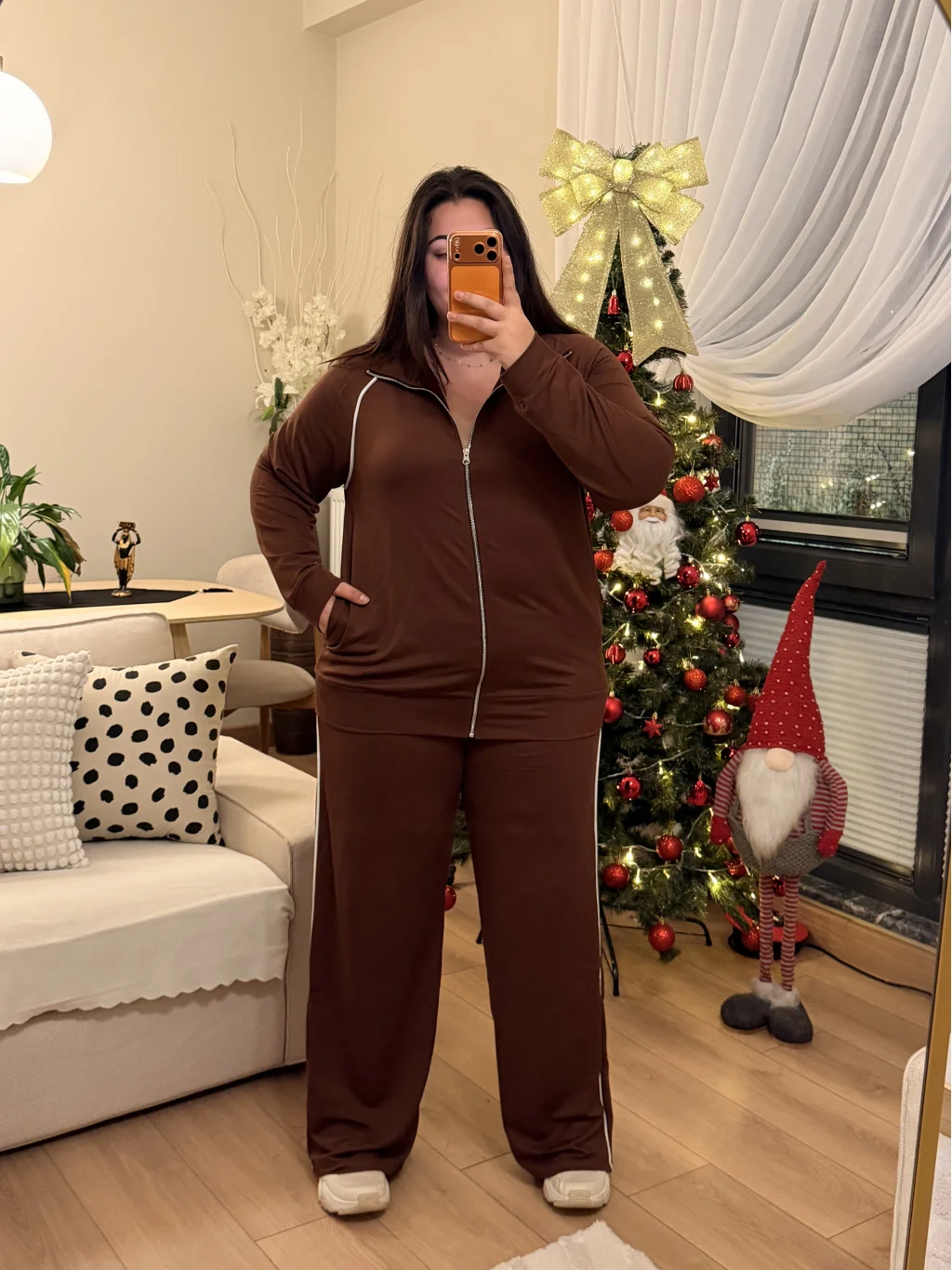 Premium Çıma Detaylı Modal Eşofman Takımı - Kahverengi