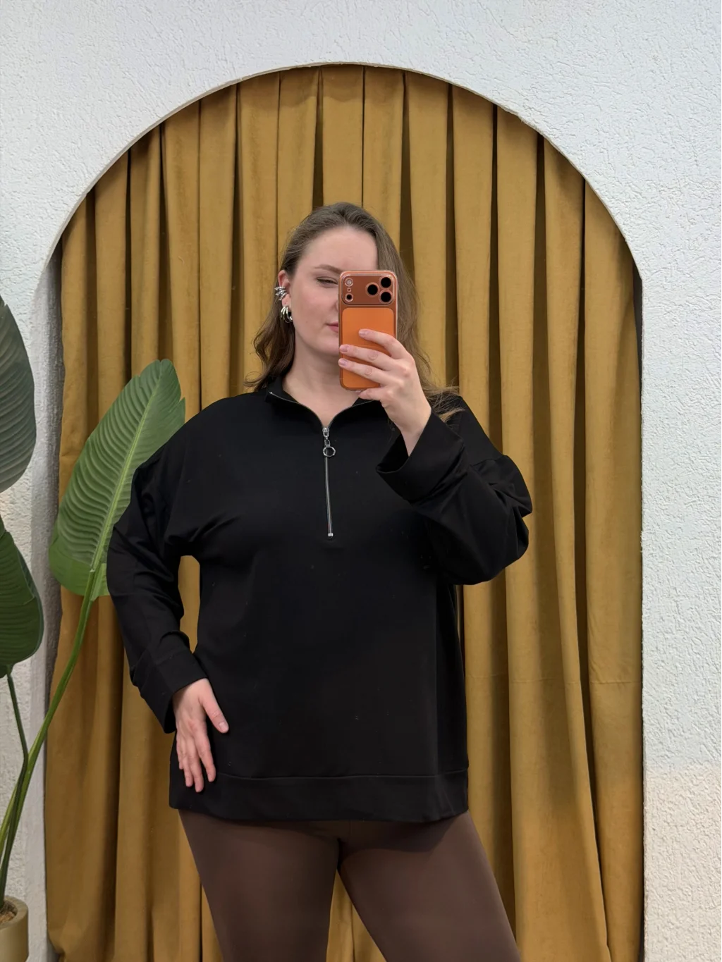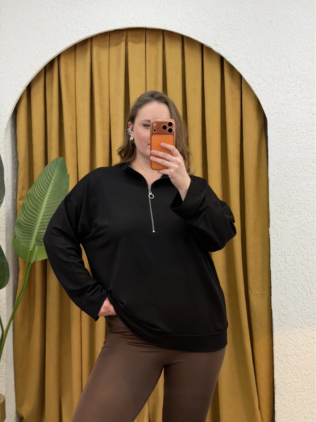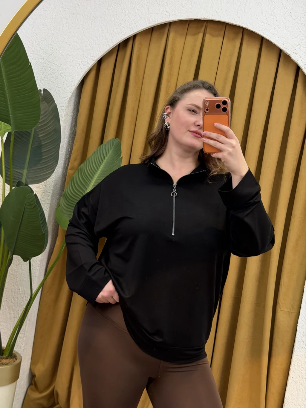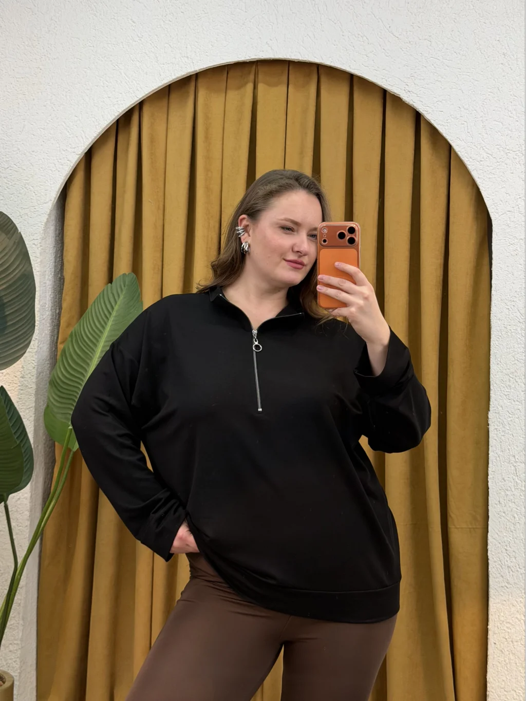 Dik Yaka, Fermuar Detaylı, Modal Kumaş, Rahat Kalıp Esnek, Likralıdır