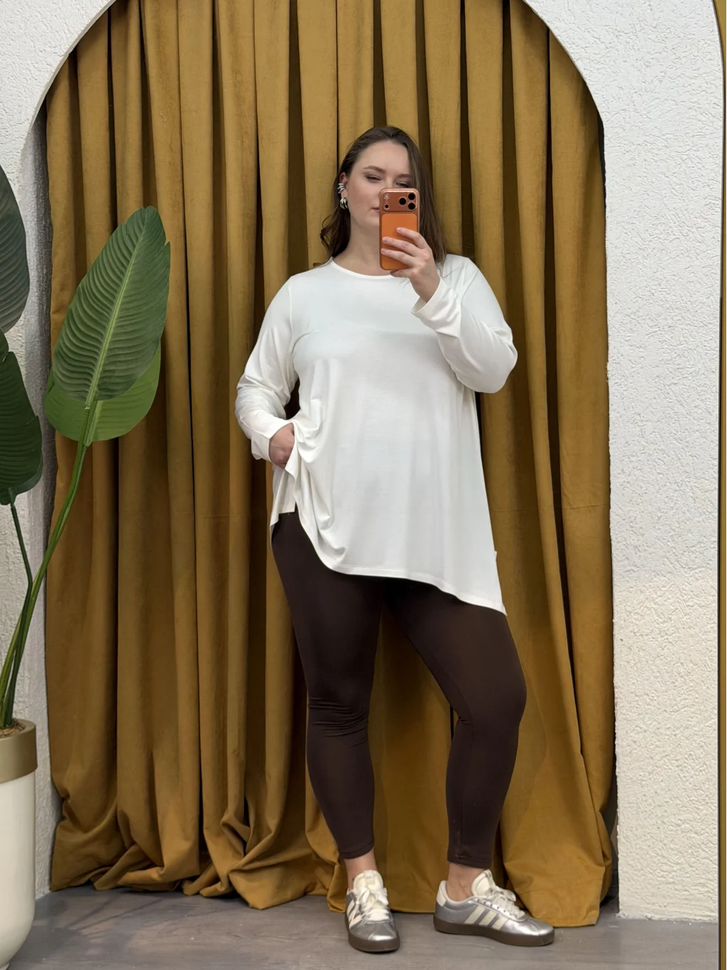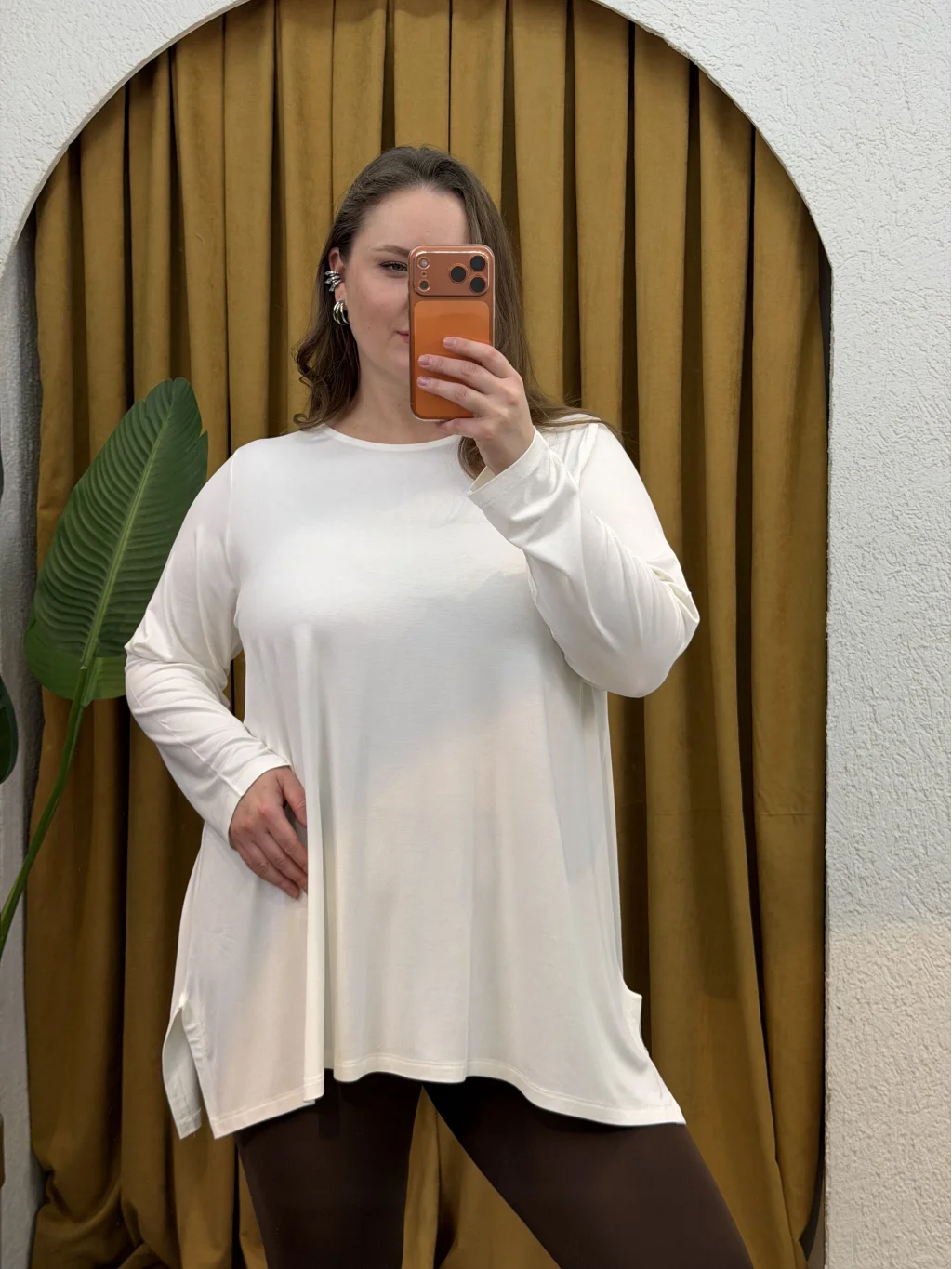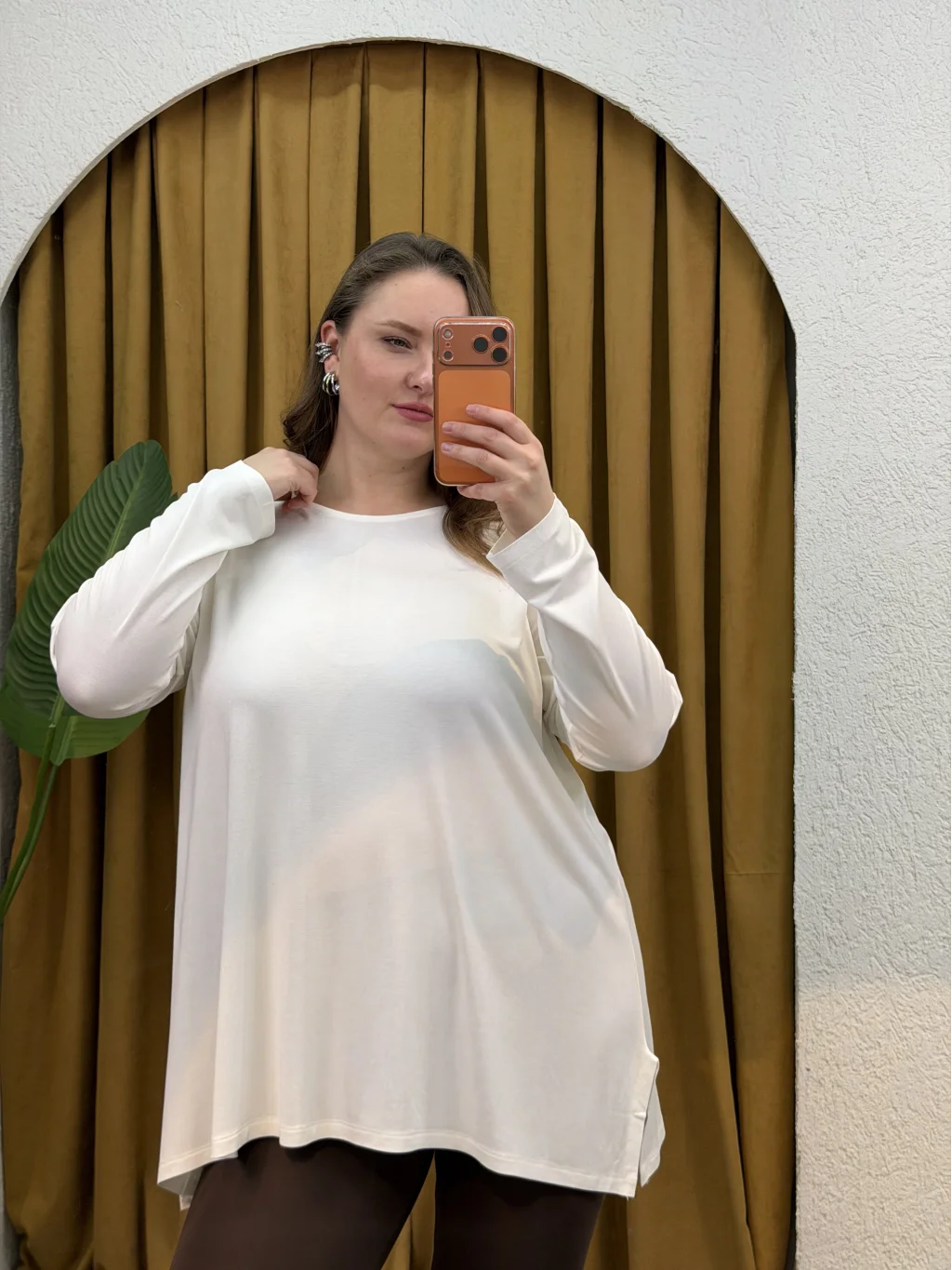 PASTEL Basic Asimetrik Modal Kumaş Esnek Bluz - Beyaz, büyük beden kadın bluz arayanlar için ideal seçim!