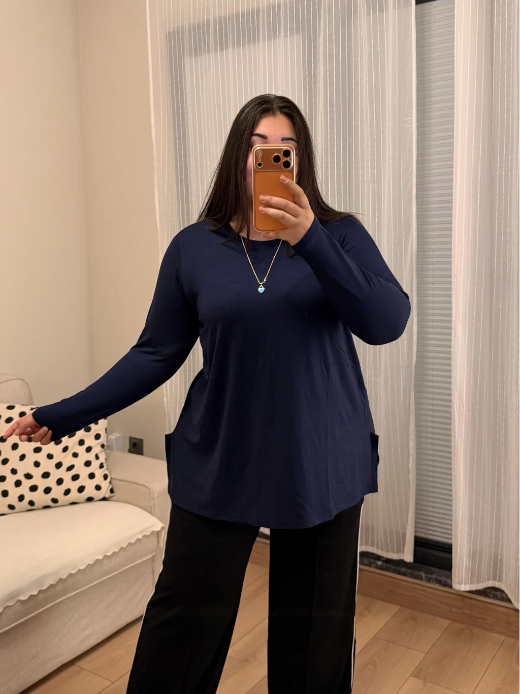 PASTEL Basic Asimetrik Modal Kumaş Esnek Bluz - Lacivert, büyük beden kadın bluz arayanlar için ideal seçim!