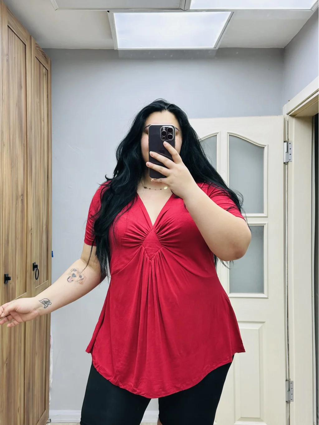 Biyeli Kare Yaka Esnek Triko Bluz - Pembe
