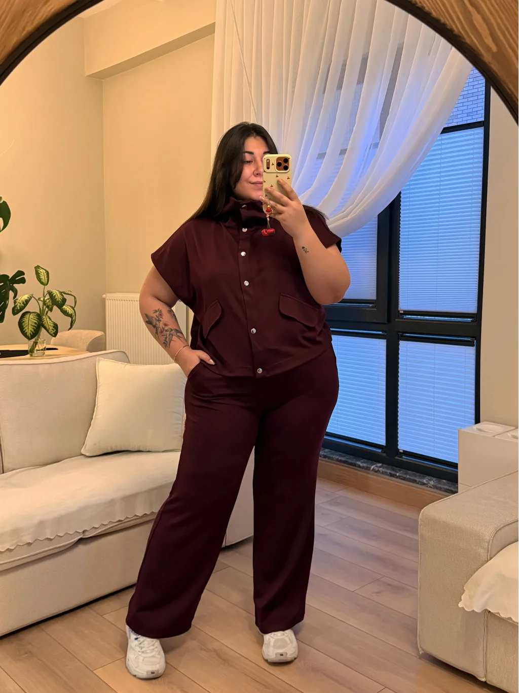 • PASTEL BUTİK Cep Detaylı İkili Modal Takım - Bordo. Büyük Beden Takım arayanlar için ideal seçenek!