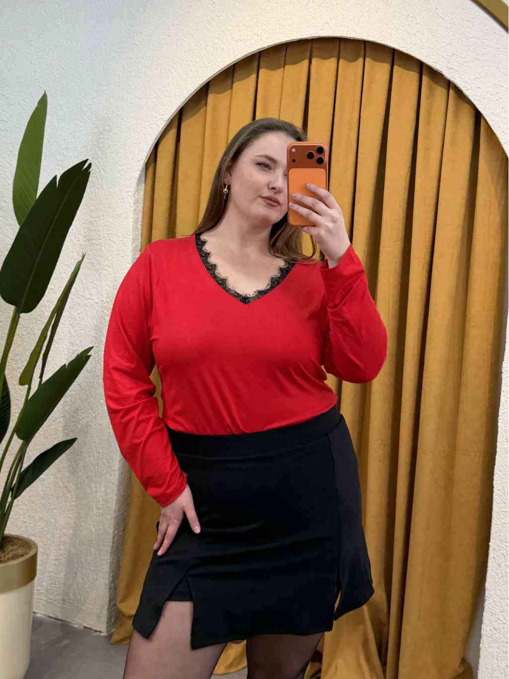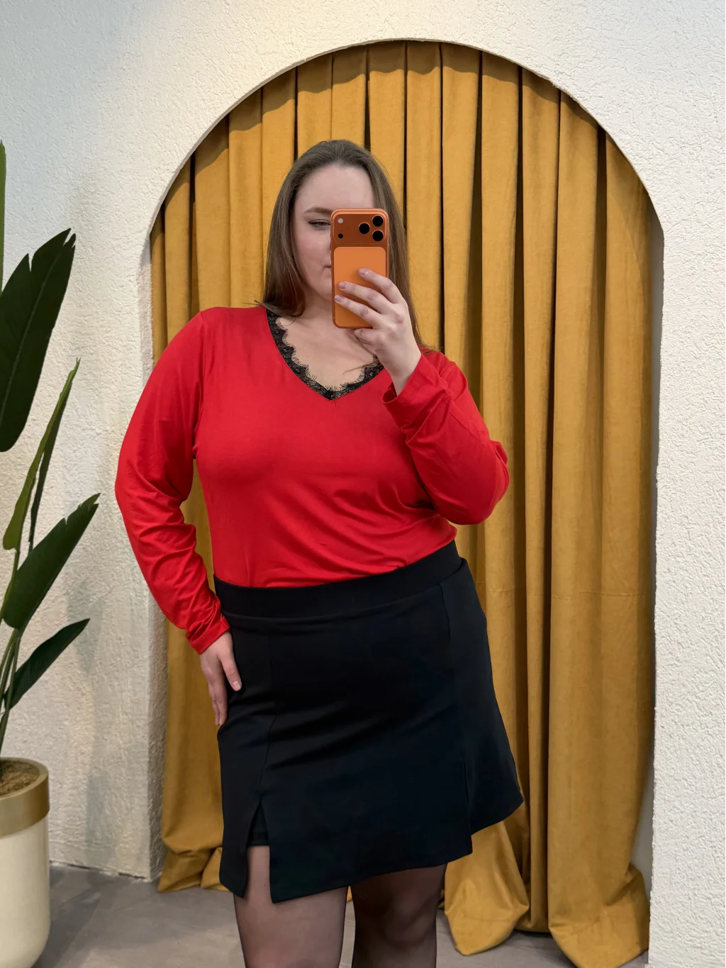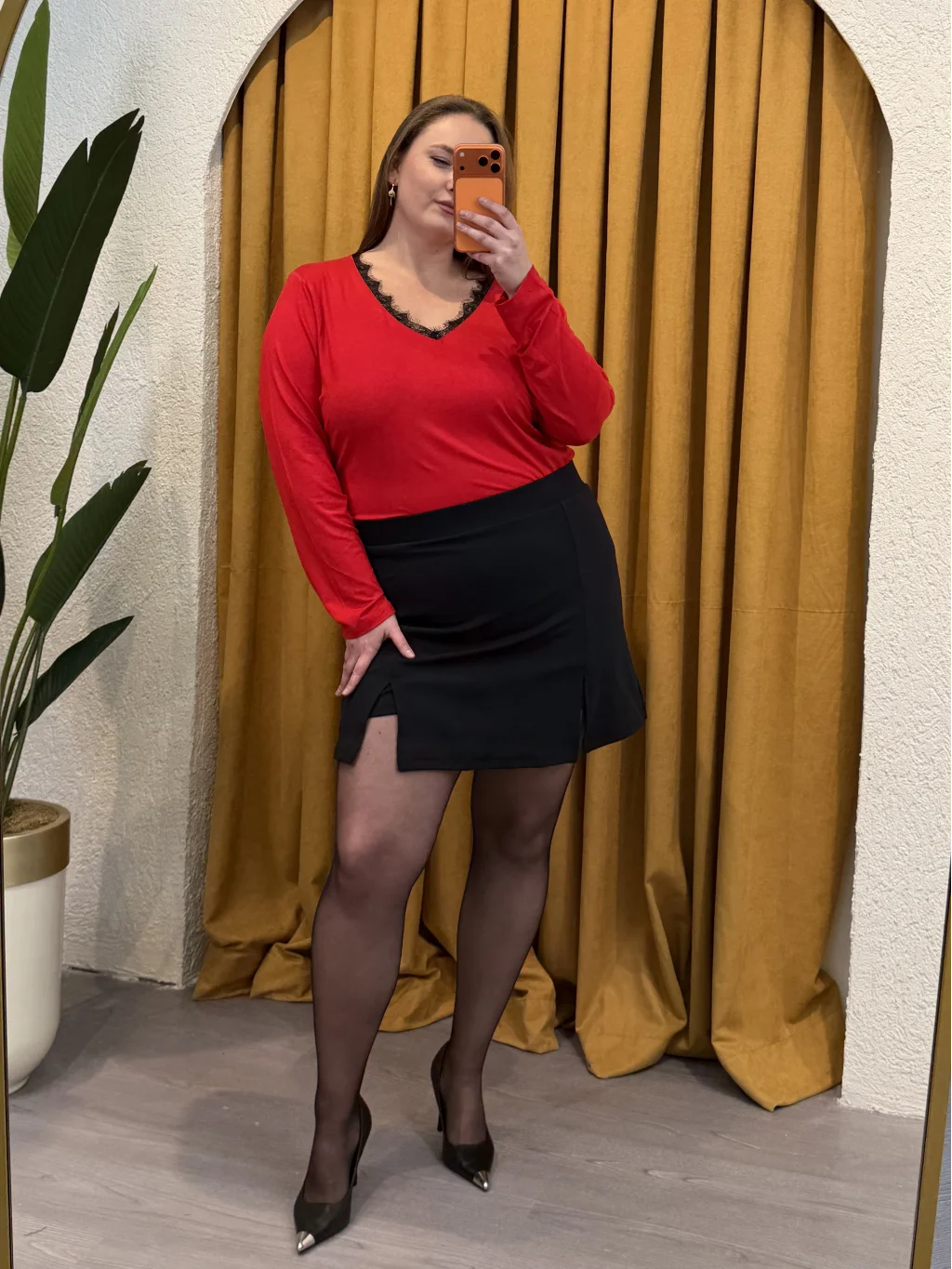 Dantel Detaylı Esnek Astarlı Etek - Bordo