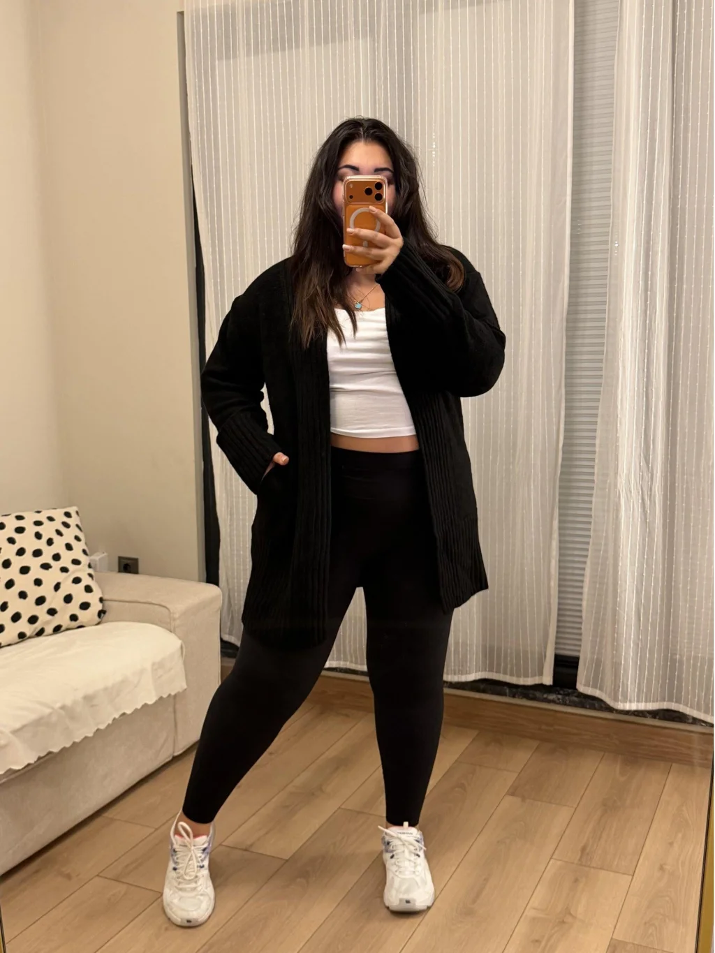 Basic Cepli Esnek Yumoş Hırka - Siyah