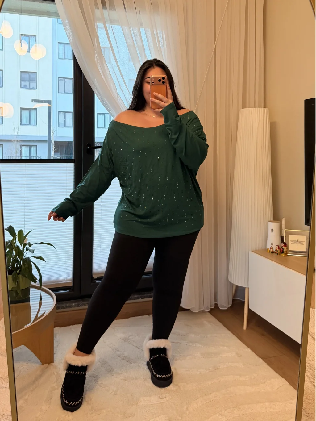 Kayık Yaka, Taş Detaylı, Modal Kumaş, Rahat Kalıp Esnek, Likralıdır