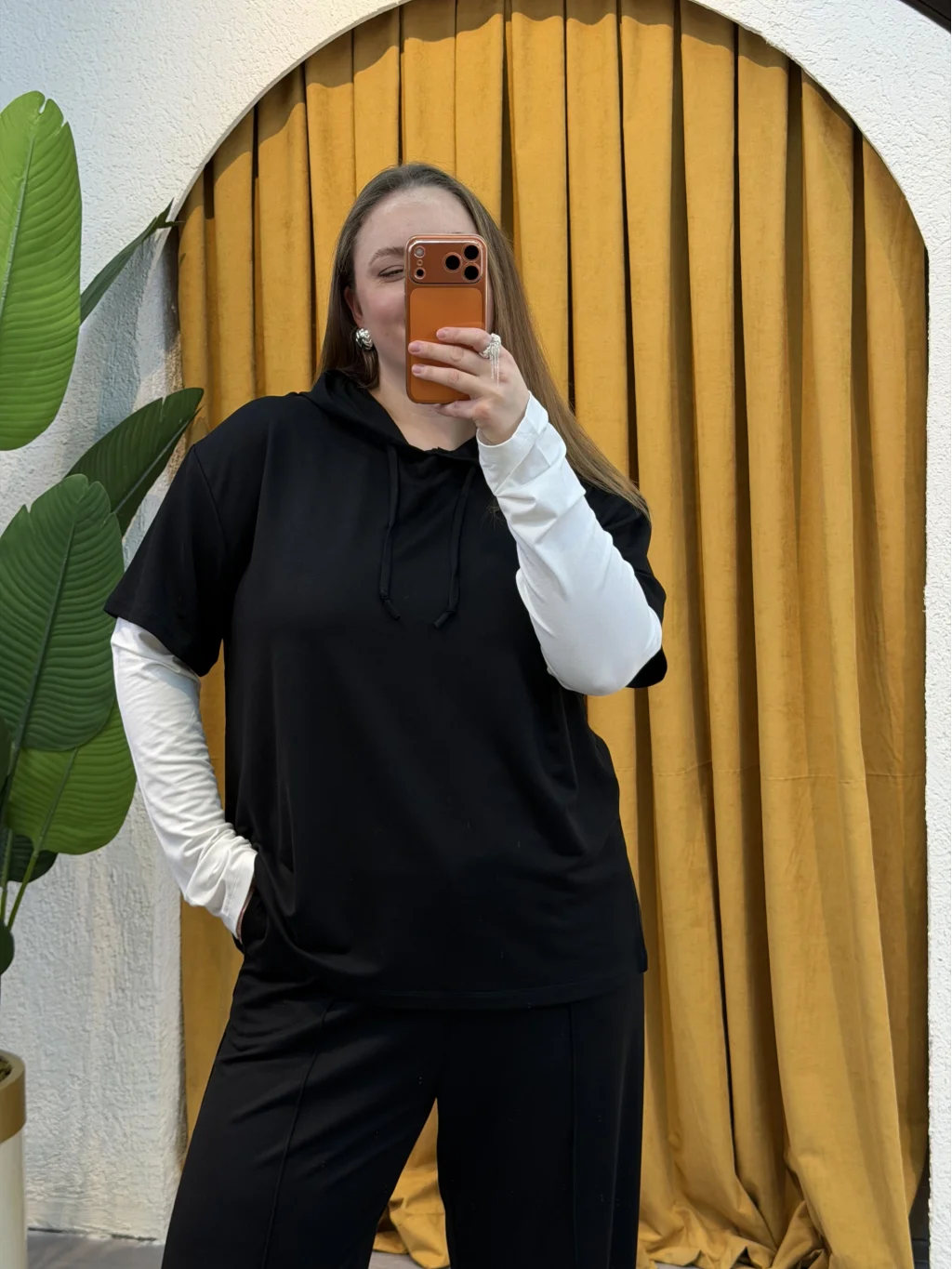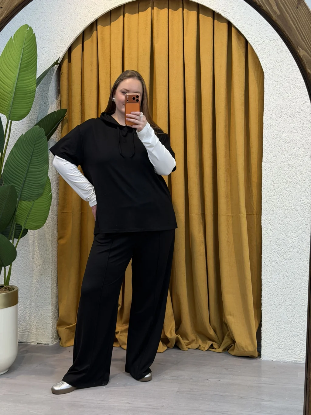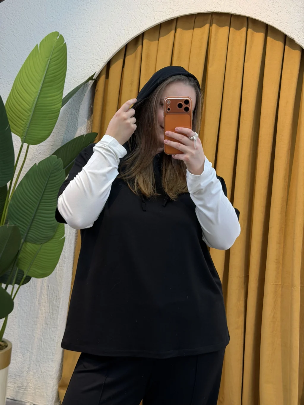 Kolları Parçalı Modal Kapüşonlu Takım - Siyah