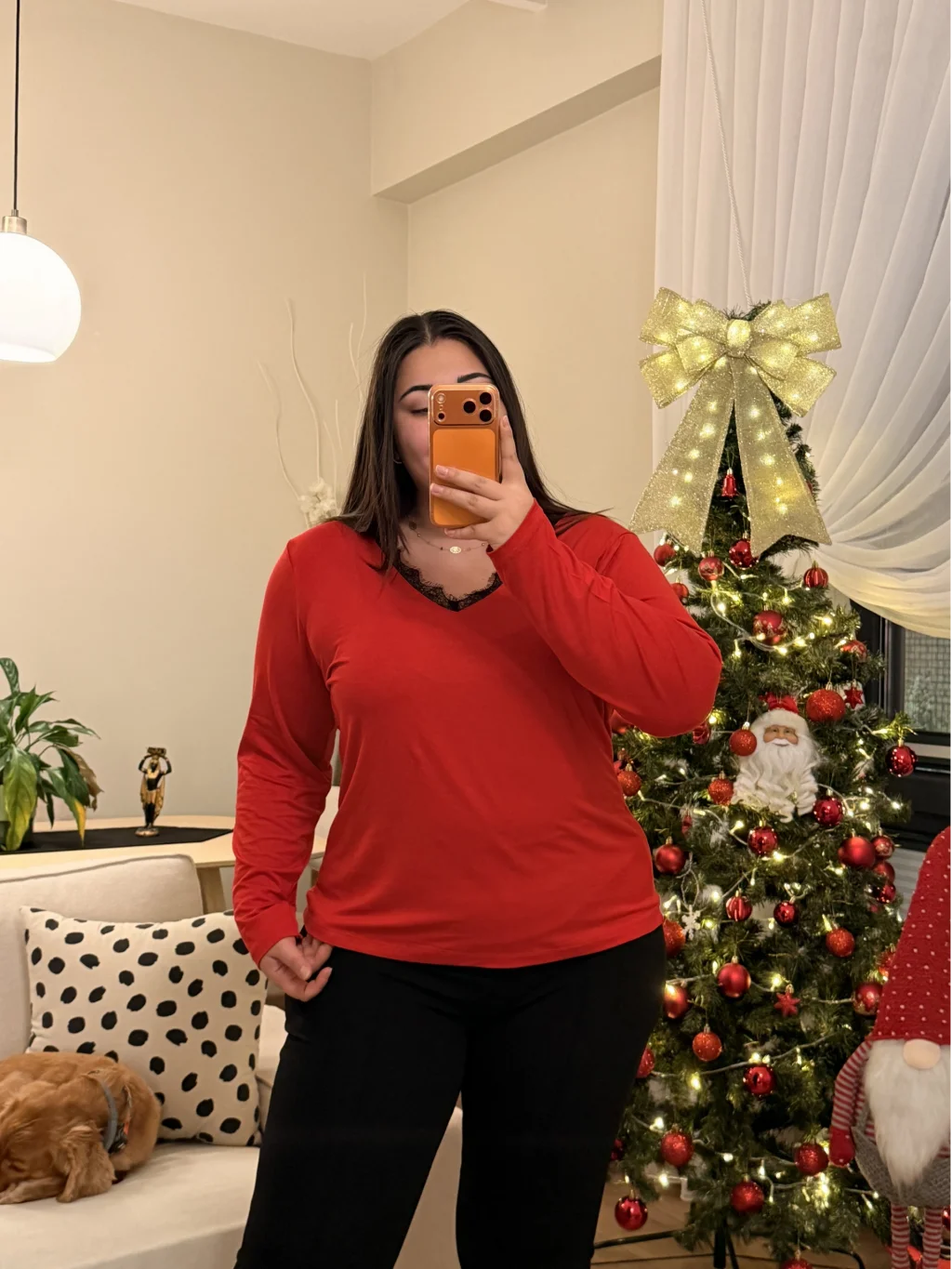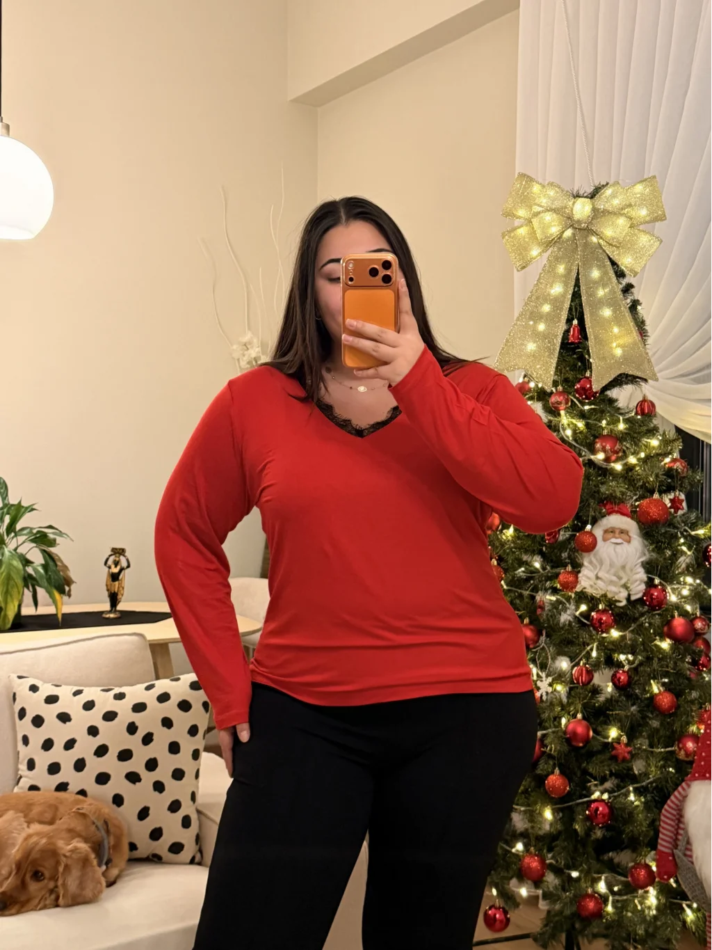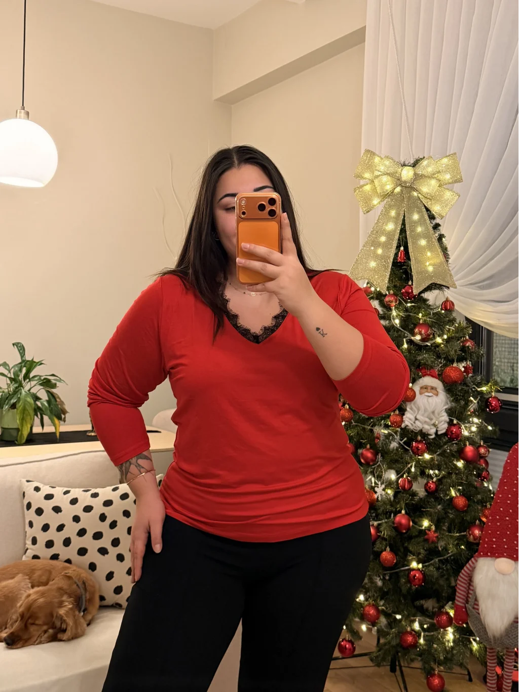 V Yaka Dantel Detaylı Esnek Modal Bluz - Kırmızı