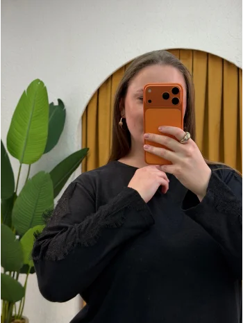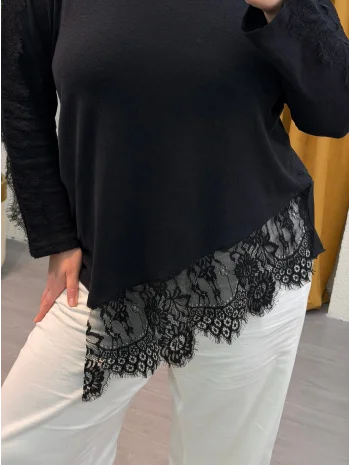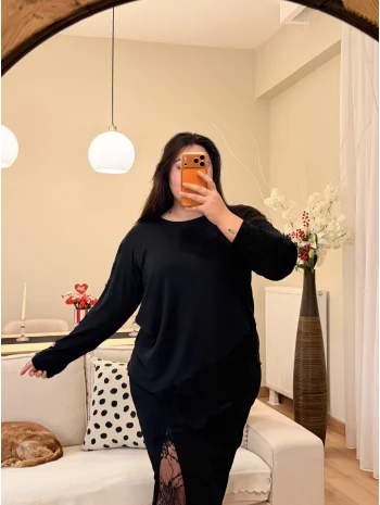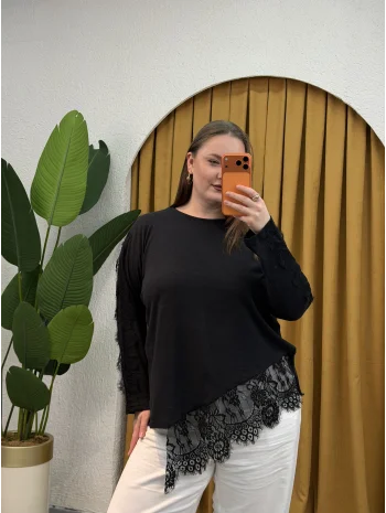 Dantel Detaylı Asimetrik Örme Bluz - Siyah