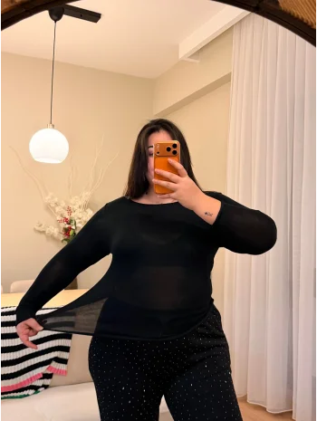Transparan Modal Bluz - Siyah