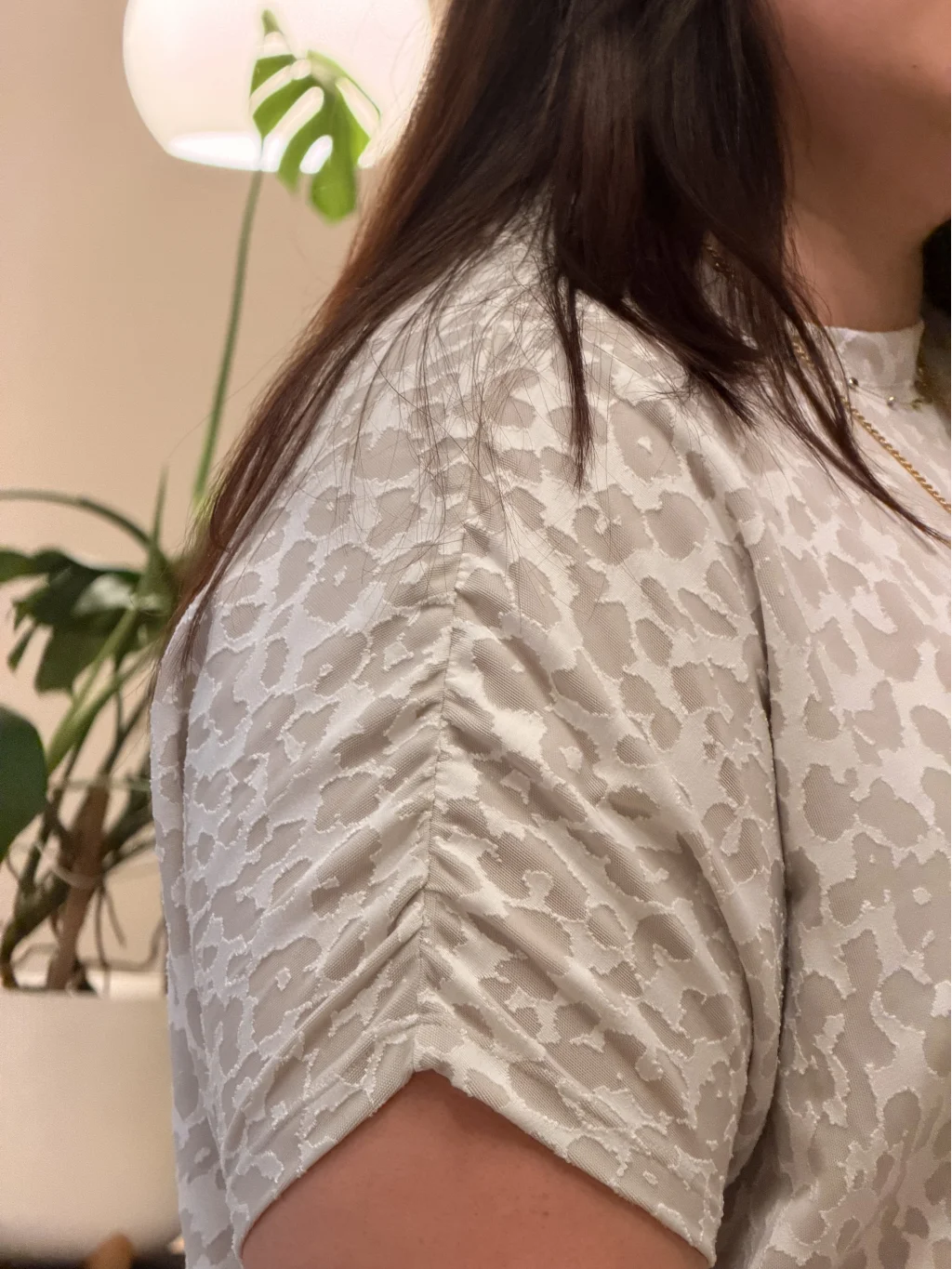 Drape Detaylı Esnek Örme Bluz - Ekru Leopar