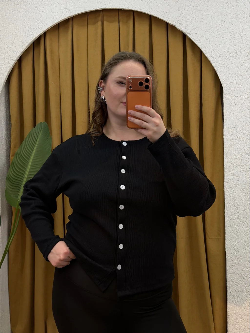 Düğmeli Basic Triko Hırka - Siyah
