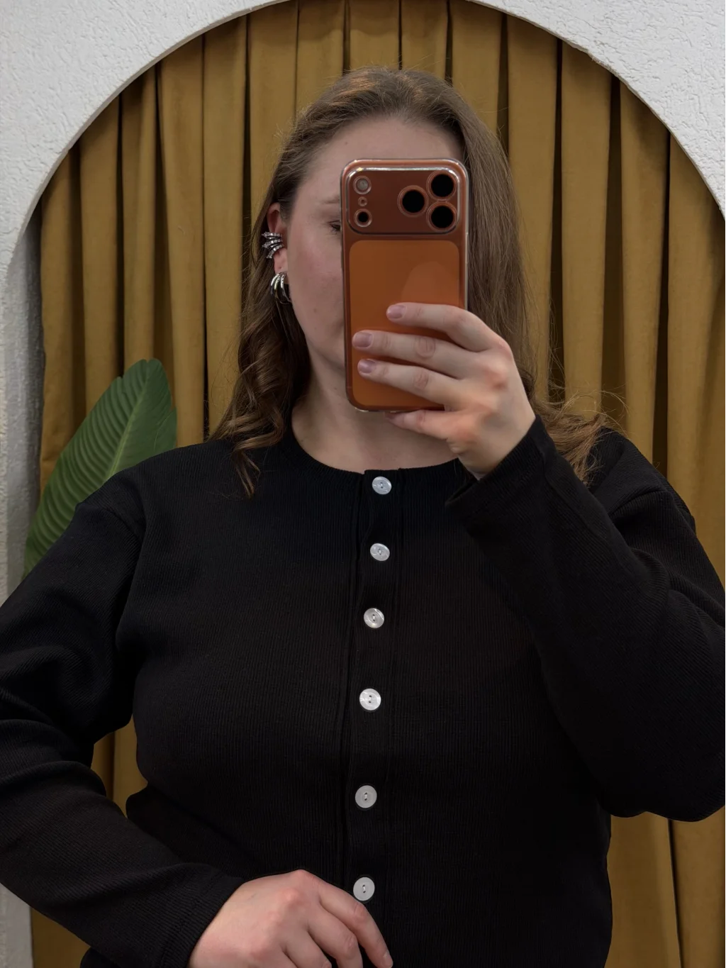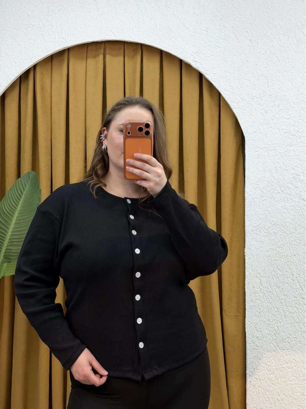Düğme Detaylı Bisiklet Yaka, Örme Triko , Rahat Kalıp Esnek, Likralı Hırka