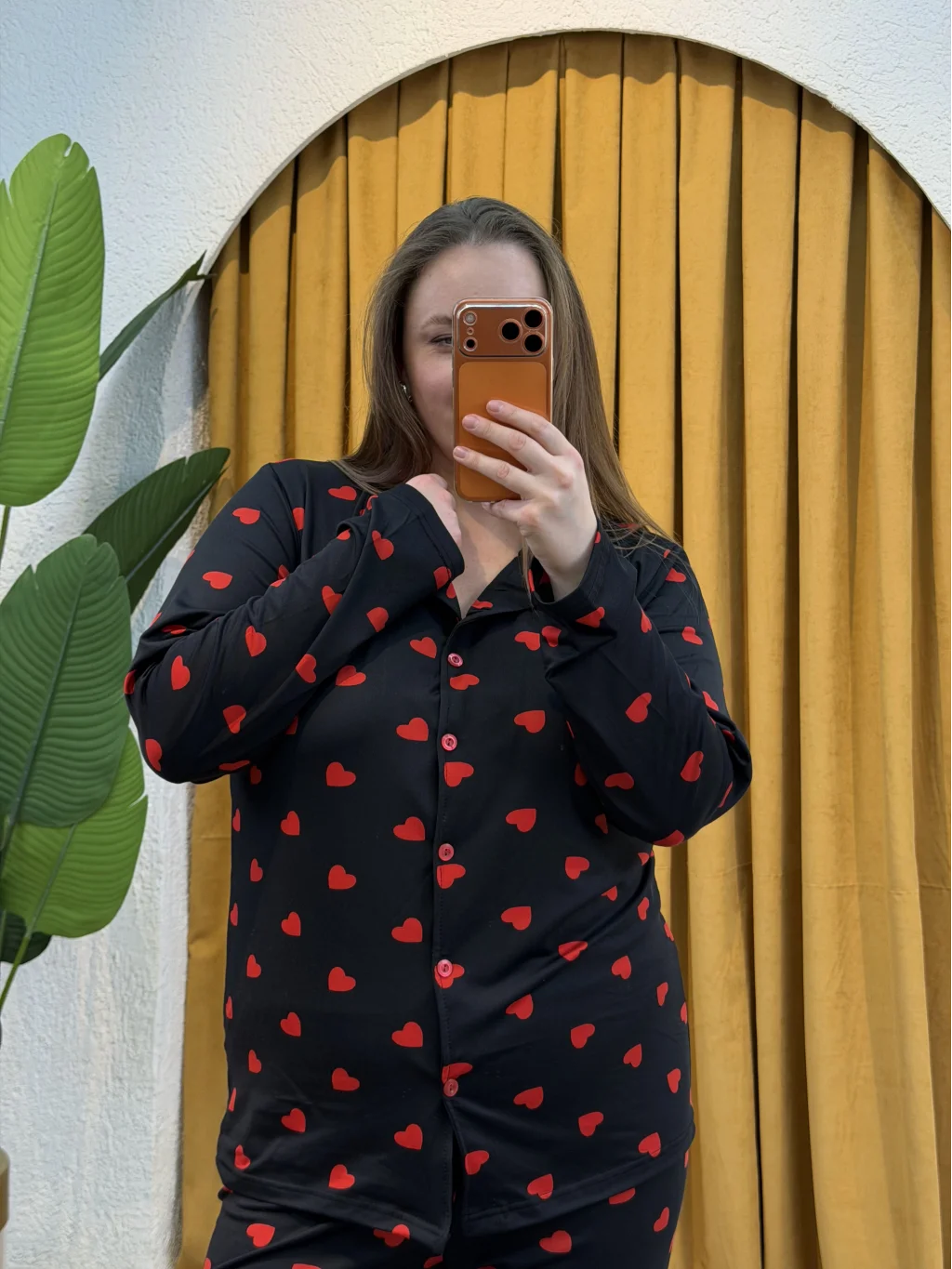 Pastel Butik Düğmeli Esnek Pijama Takımı - Siyah Kalp Desenli, rahatlığı ve şıklığı bir arada sunar.