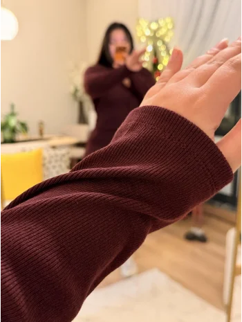Etekli Esnek Triko Takım - Bordo