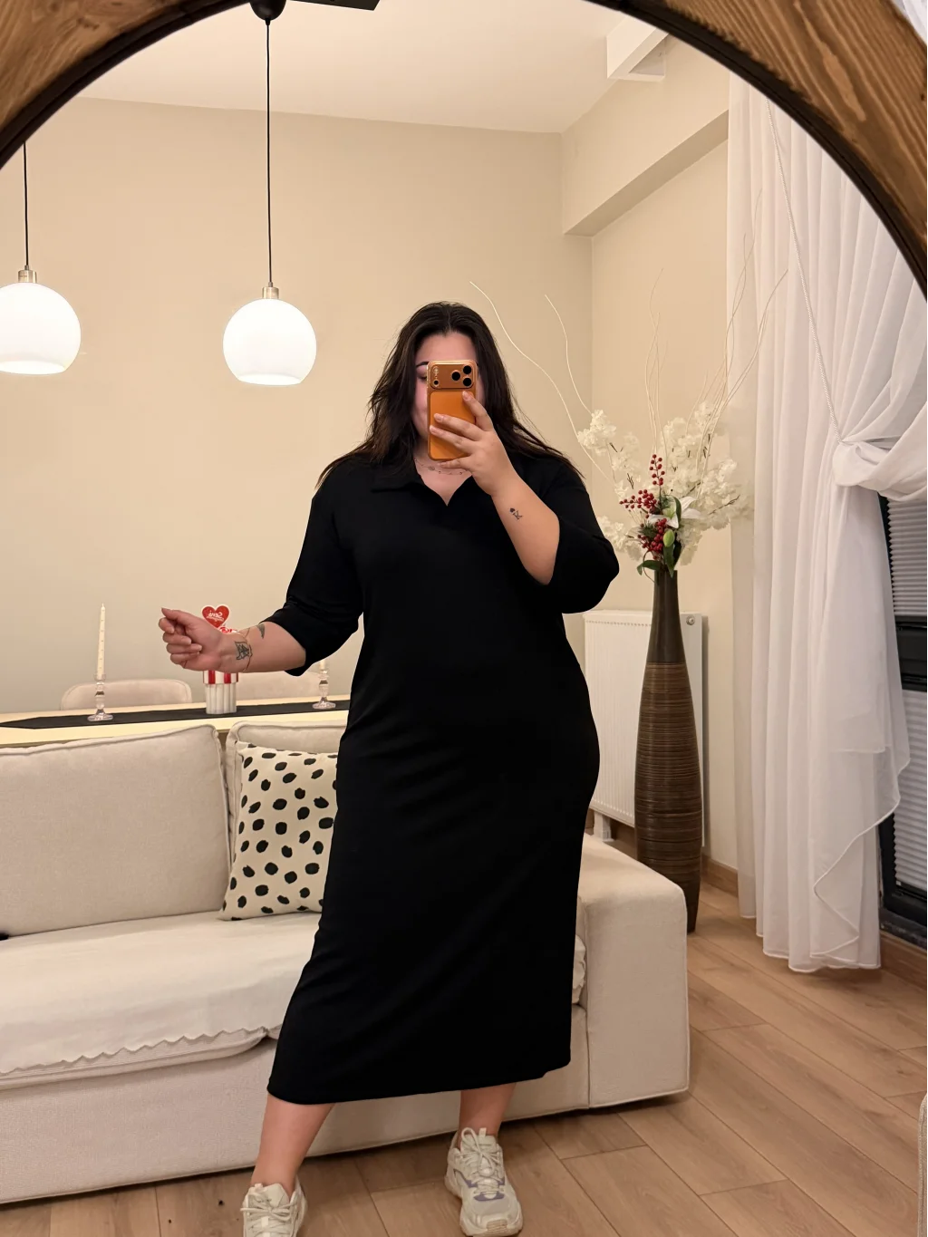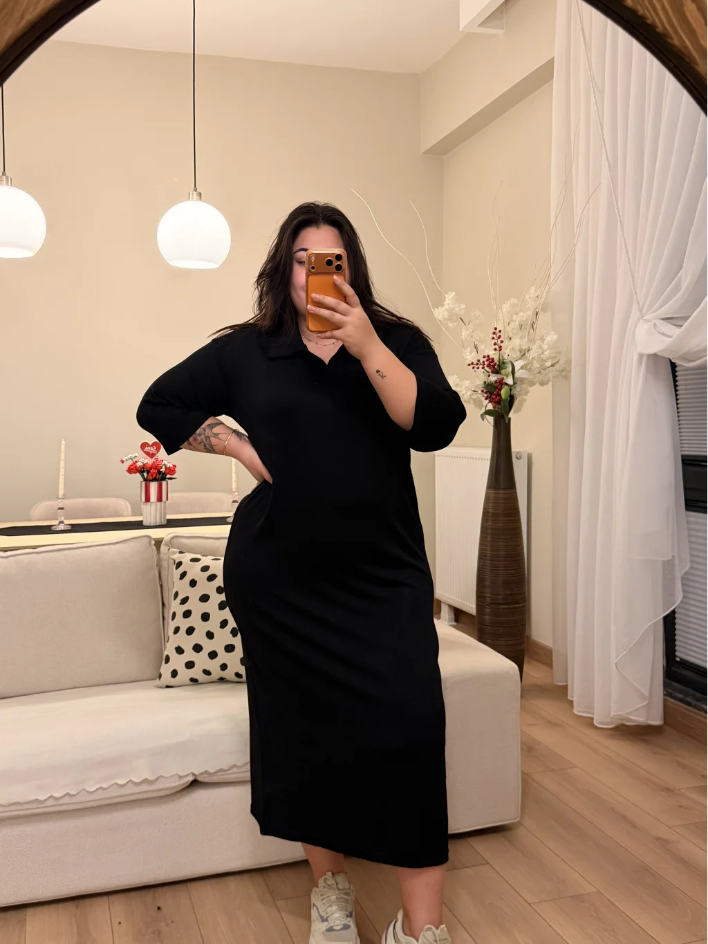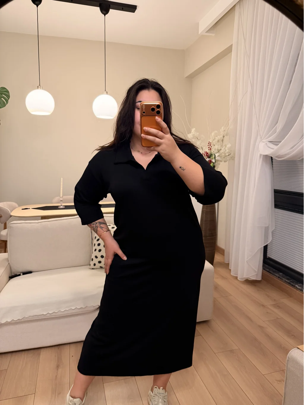 Modelin Ölçüleri: Boy: 1.75 cm Kilo: 105 kg Bel: 105 cm Göğüs: 116 cm Basen: 140 cm Modelin Giydiği Beden 46 Beden