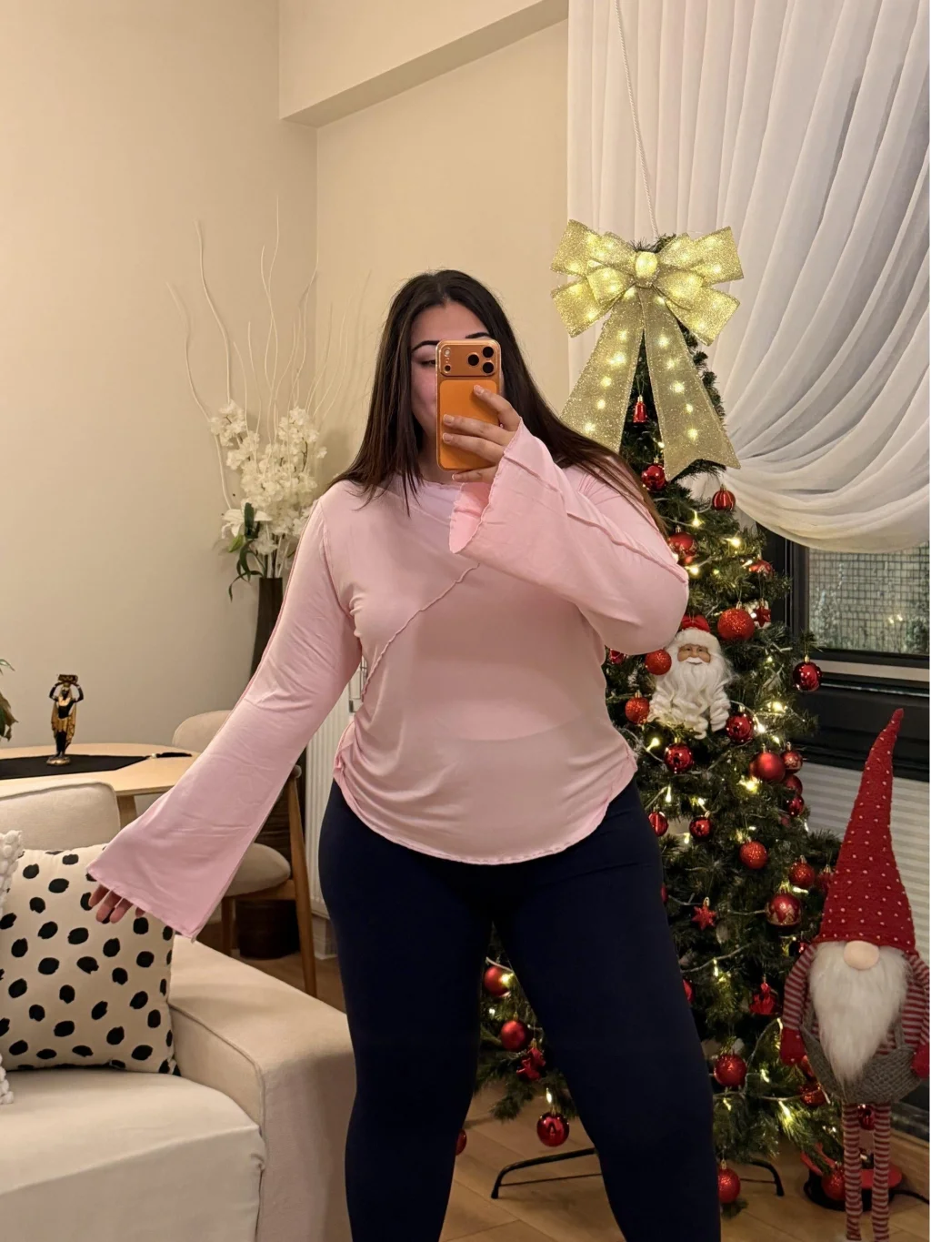 Sufle Detaylı İspanyol Kol Modal Bluz - Pembe