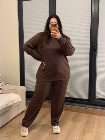 Premium Çıma Detaylı Modal Eşofman Takımı - Kahverengi