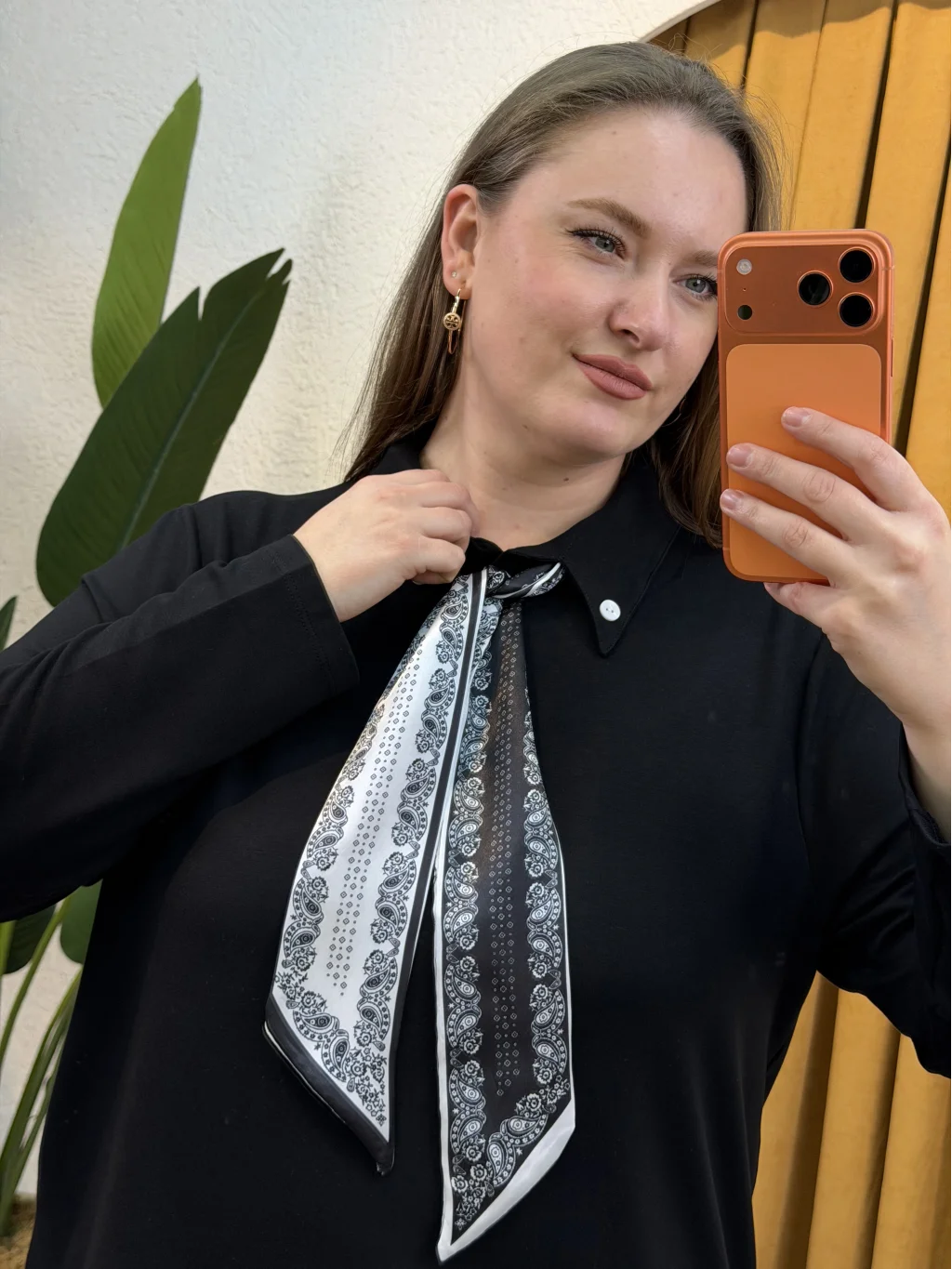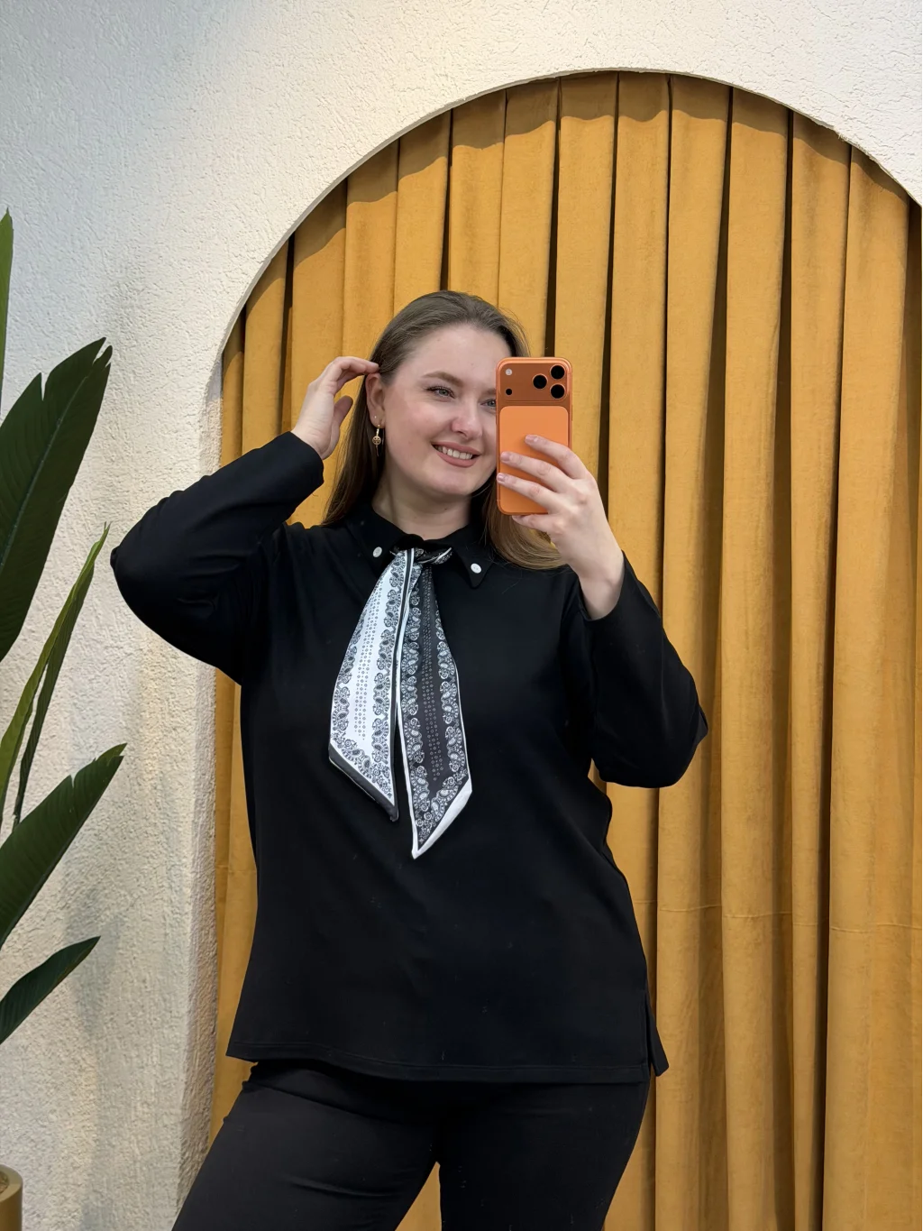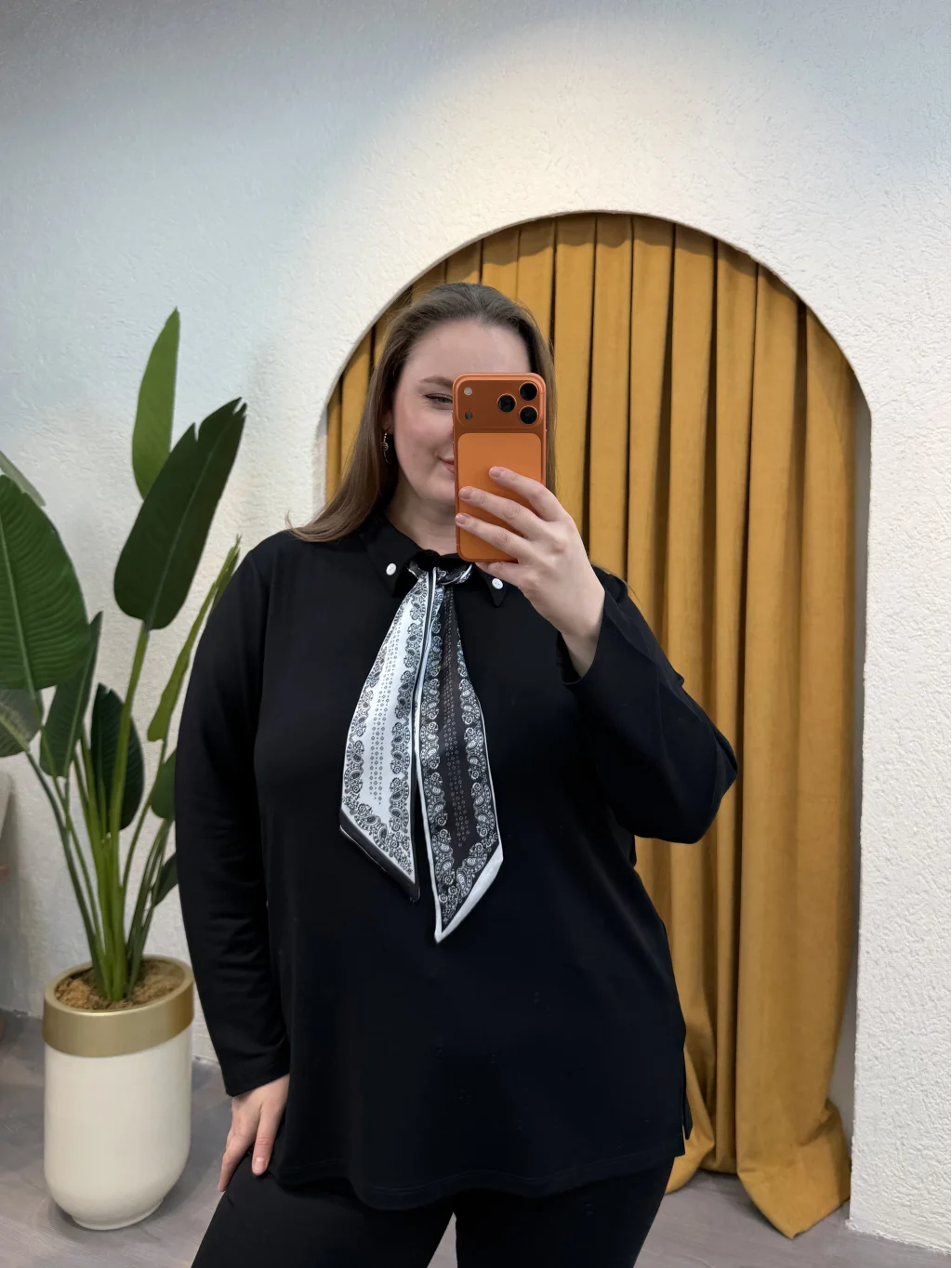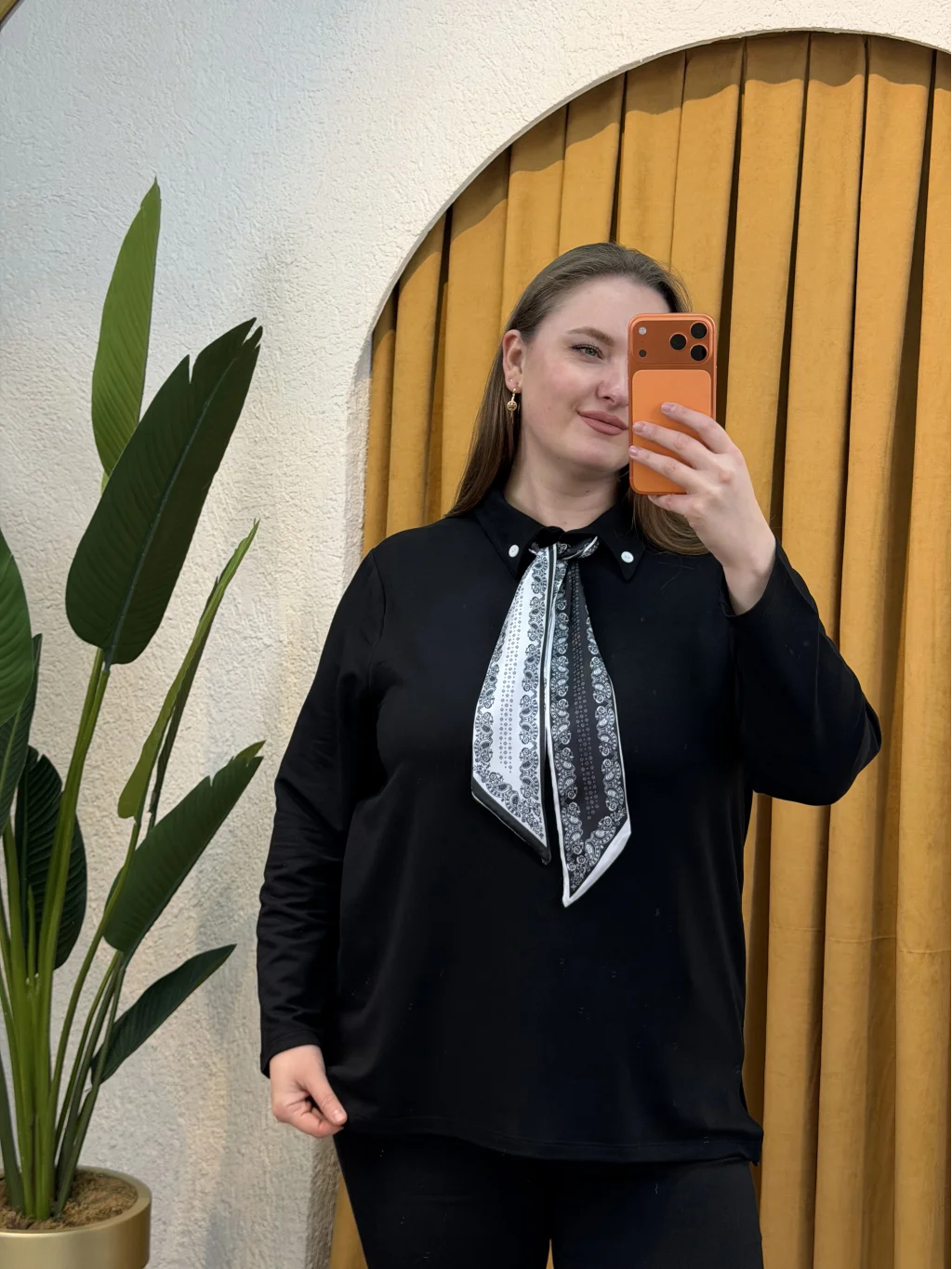 Gömlek Yaka, Fular Detaylı, Esnek Modal Kumaş , Rahat Kalıp