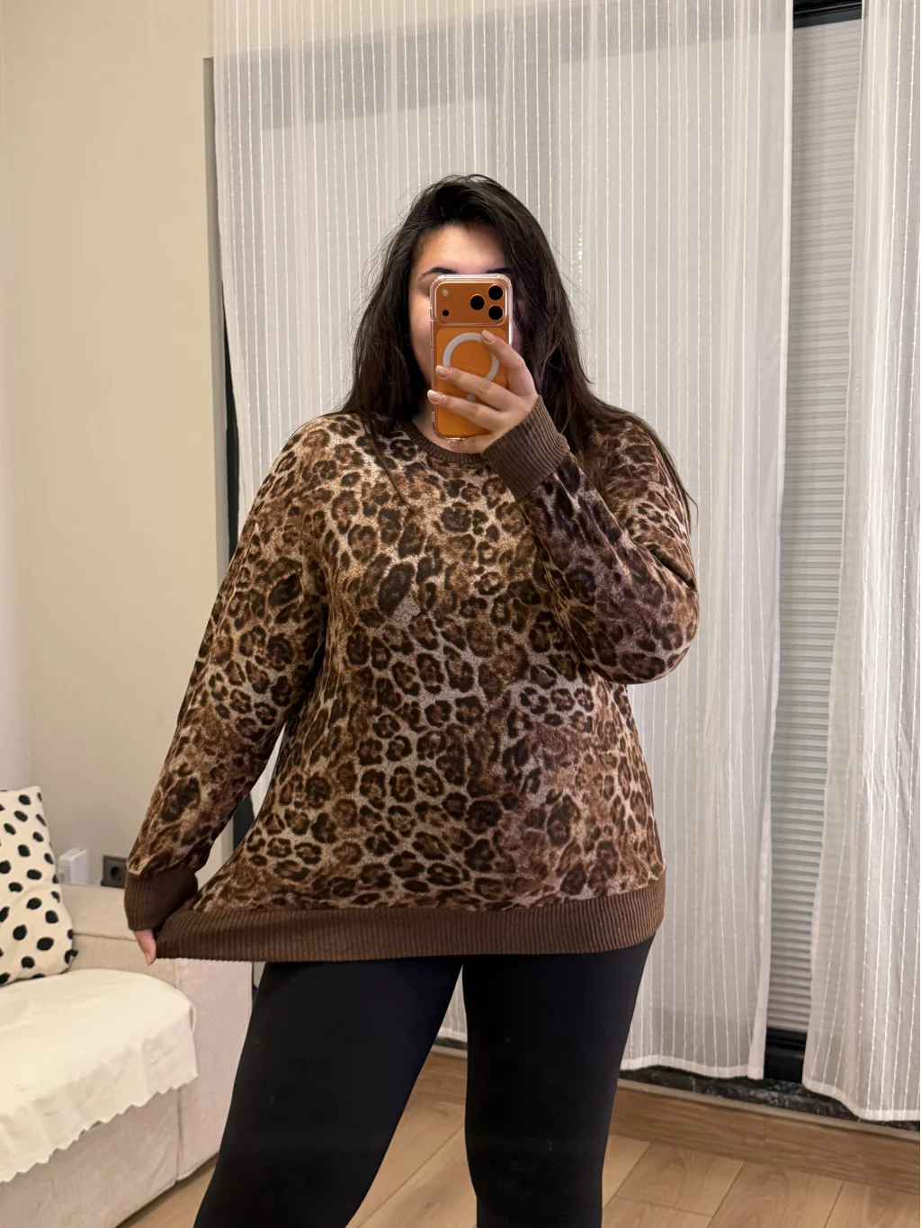 Pastel Yumoş bluz, leopar deseni ve geniş kalıbıyla rahatlık ve şıklığı bir arada sunuyor.