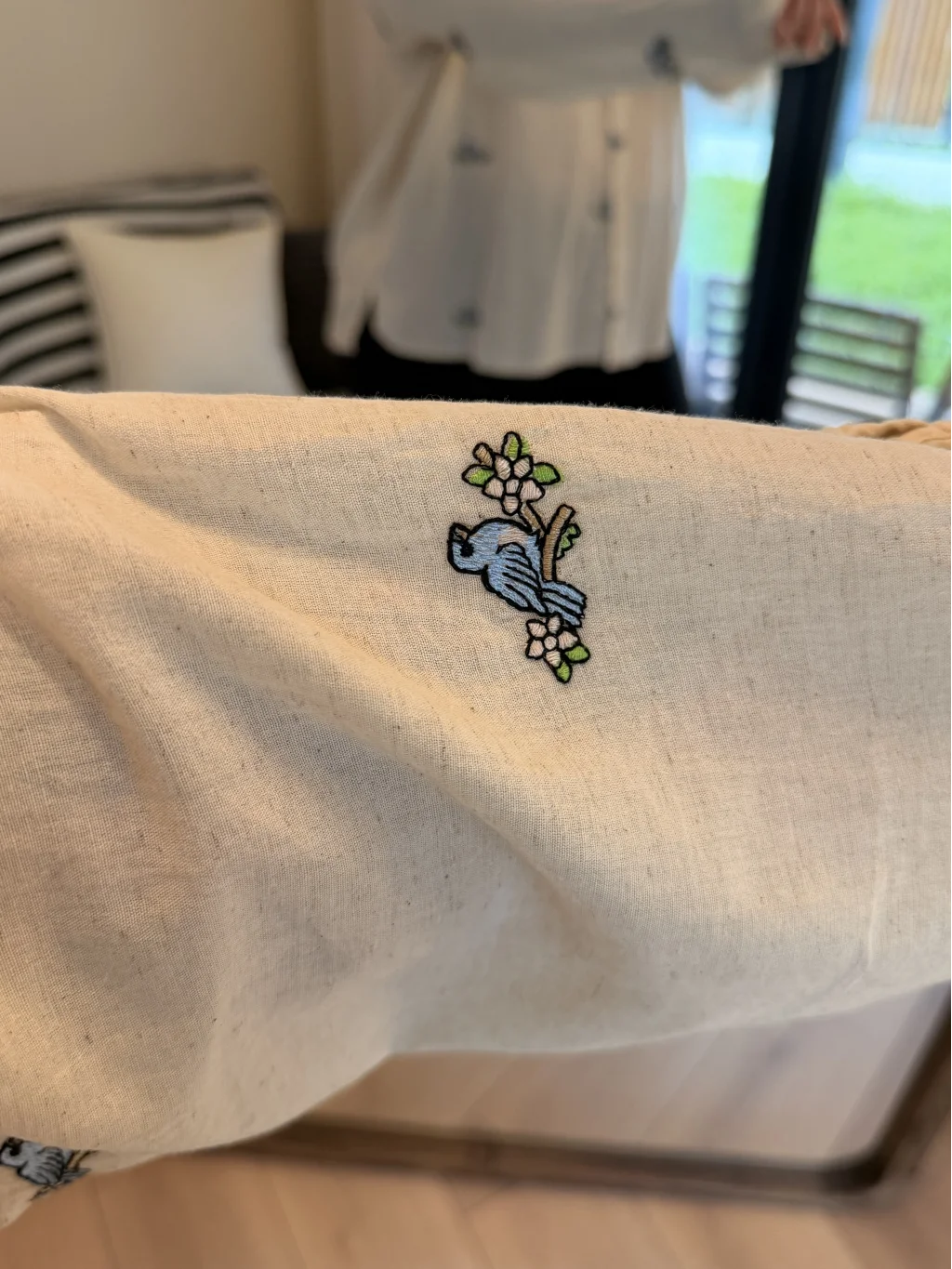 Geniş Kesim Pamuklu Gömlek - Kuş Detaylı Nakışlı