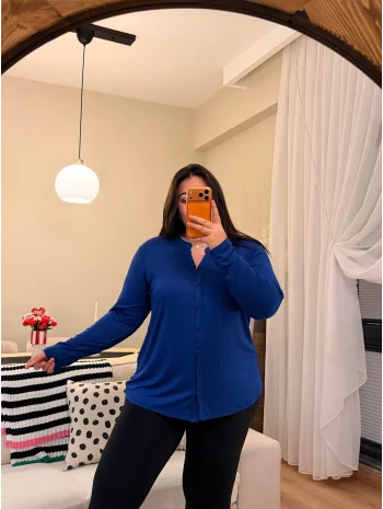 Hakim Yaka Esnek Pamuklu Penye Gömlek - Mavi