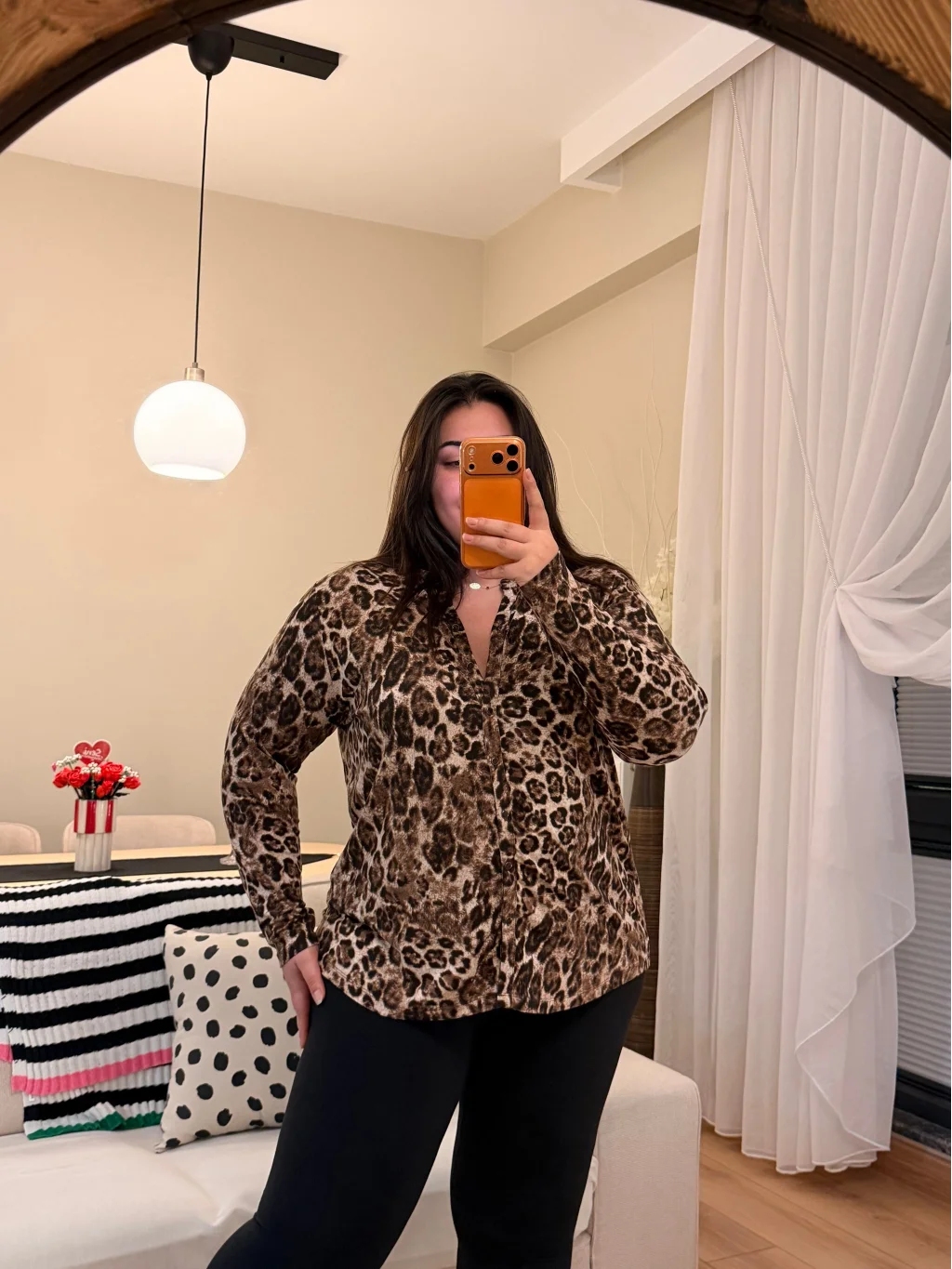 Hakim Yaka Esnek Pamuklu Penye Gömlek - Leopar
