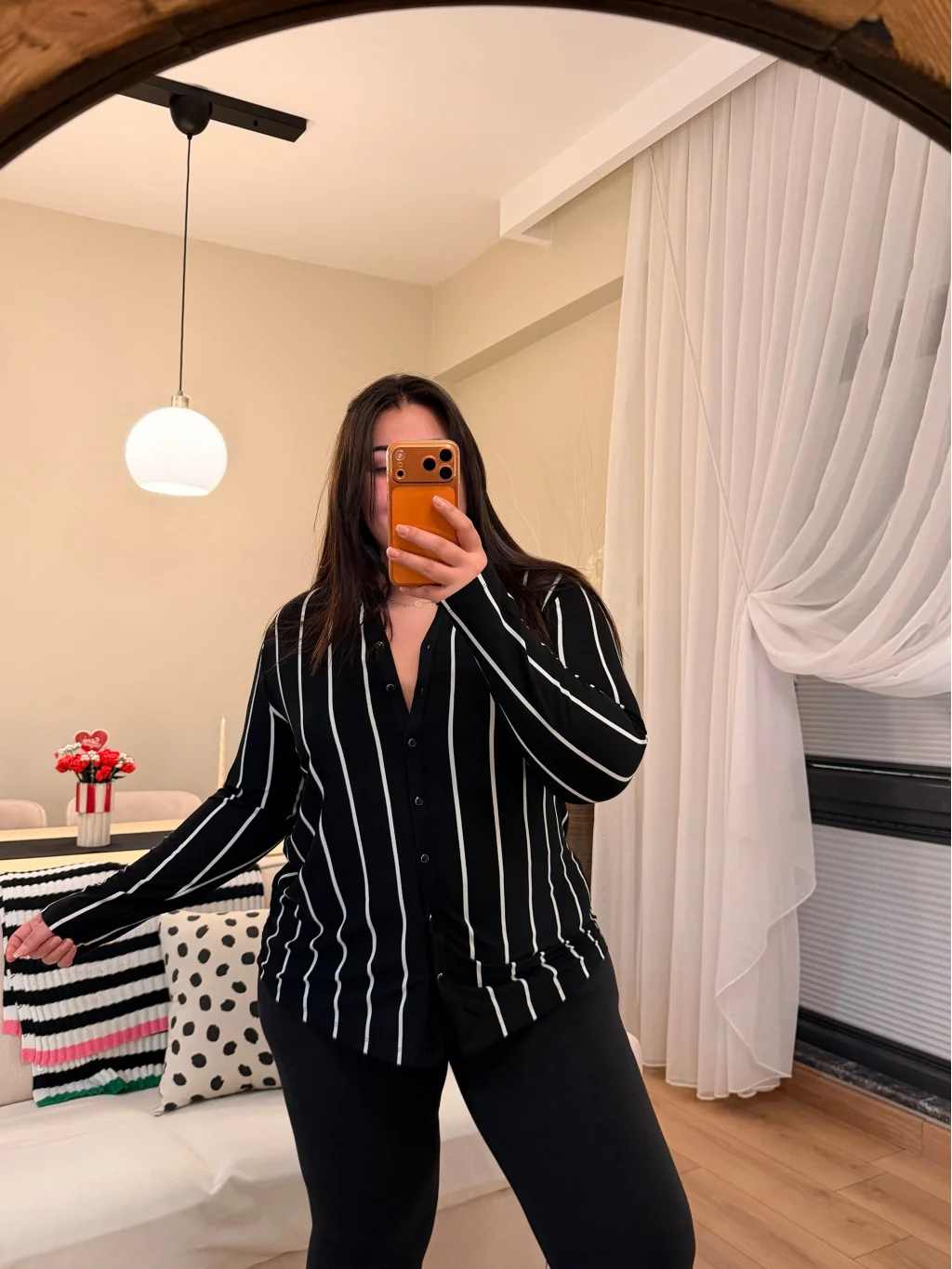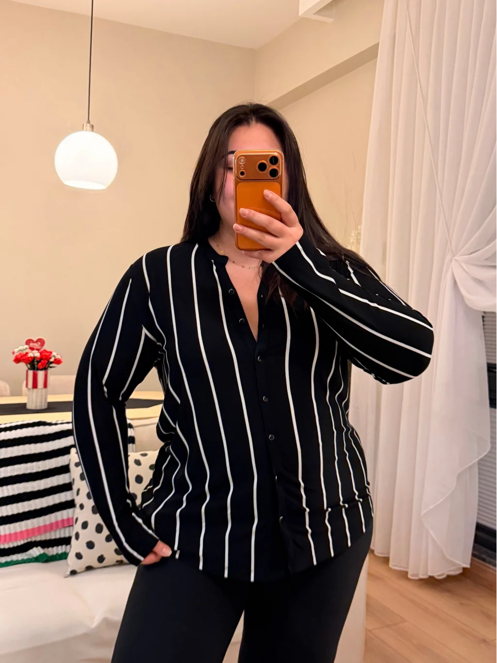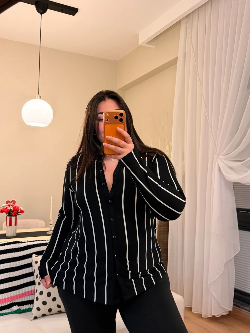 Hakim Yaka Esnek Pamuklu Penye Gömlek - Siyah Çizgili